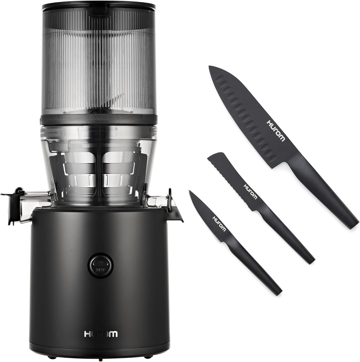 Hurom Black H320 Slow Juicer with German Steel Knife Set, Self-Feeding Cold Press Juice Machine, Corrosion-Resistant and Non-Stick Coated Blades, High Yield, BPA Free (500ml/ 16oz)