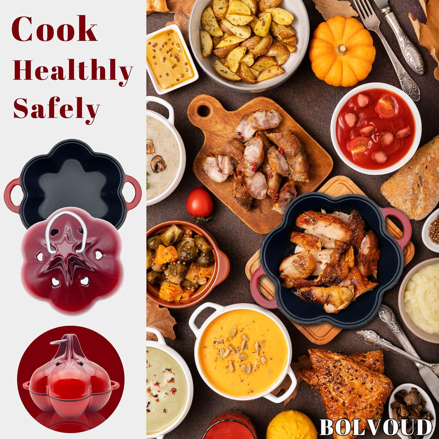 - 🔥 【Premium Enameled Cast Iron Cookware】 Crafted with durable enamel-coated cast iron, this vibrant smoker box resists rust, cracking, and flavor transfer. SIZE: 7.4 x 6.1 x 5.4 inches, BOLVOUD Cast Iron Smoker Roaster doubles as a garlic roaster.