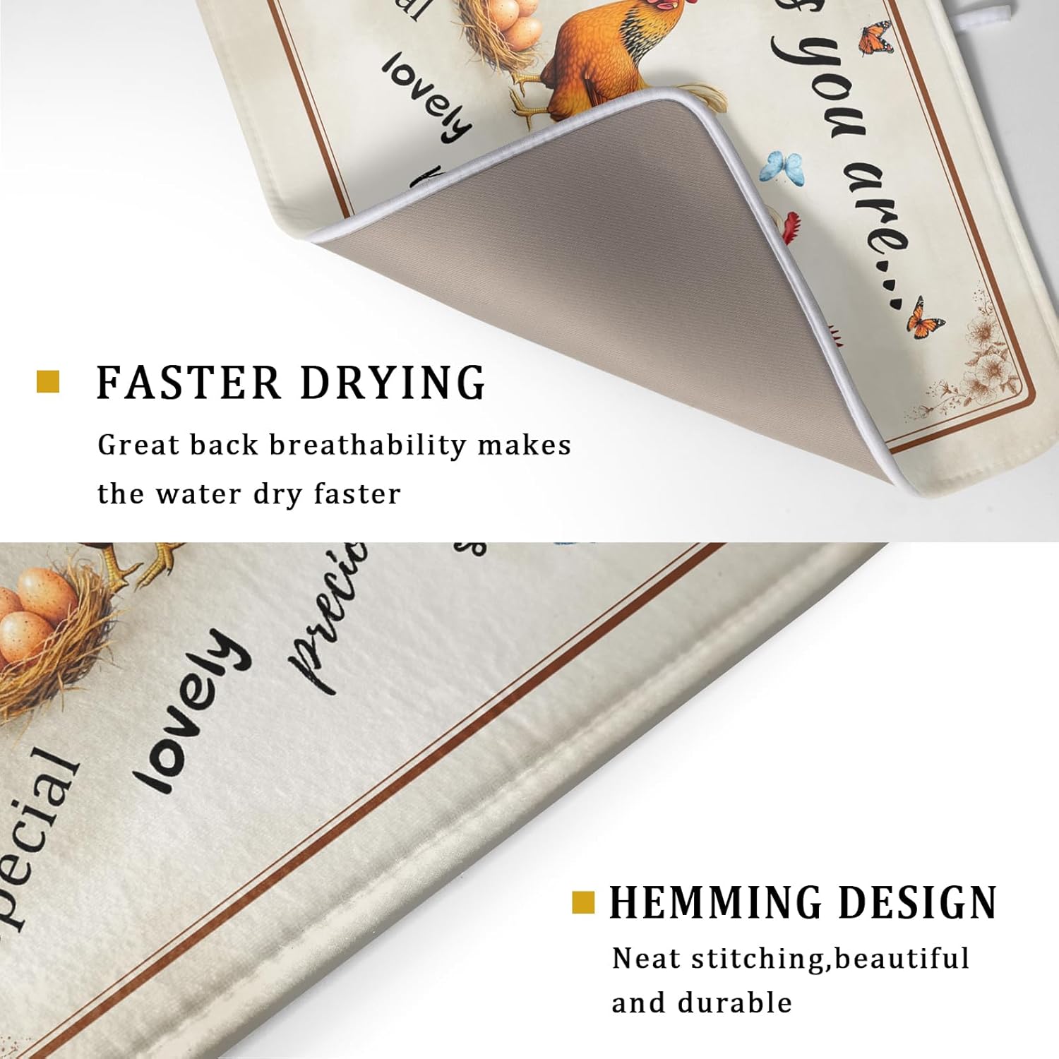 Farmhouse Rooster Dish Drying Mat - Vintage Chicken Absorbent Microfiber Dish Drying Pad for Kitchen Coffee Bar