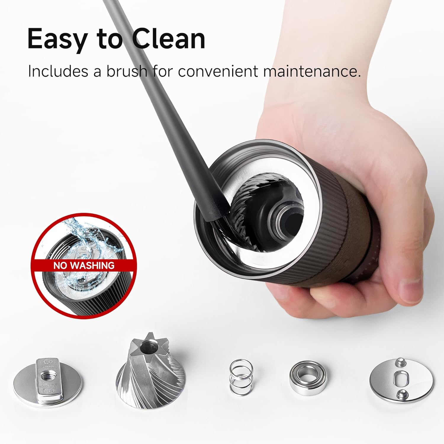- Engineered for Comfort - Aircraft-grade aluminum body (1.1lbs) with ergonomic rubber grip zones reduces hand strain. Lab-tested steel crank requires 30% less effort, grinding full 22g coffee beans in 90 seconds - perfect for morning rush.