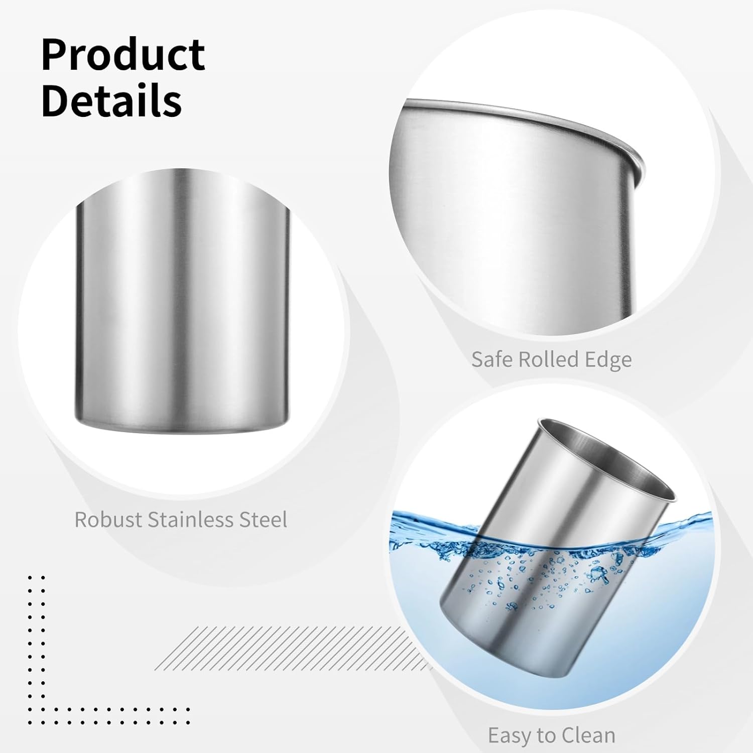 3 PCS Stainless Steel Kitchen Utensil Holders, 5.5 x 7.3 in Cylinder Kitchen Countertop Organizer, Dishwasher Safe Cooking Utensil Holder, Large Capacity for Cafe Restaurant Bakery