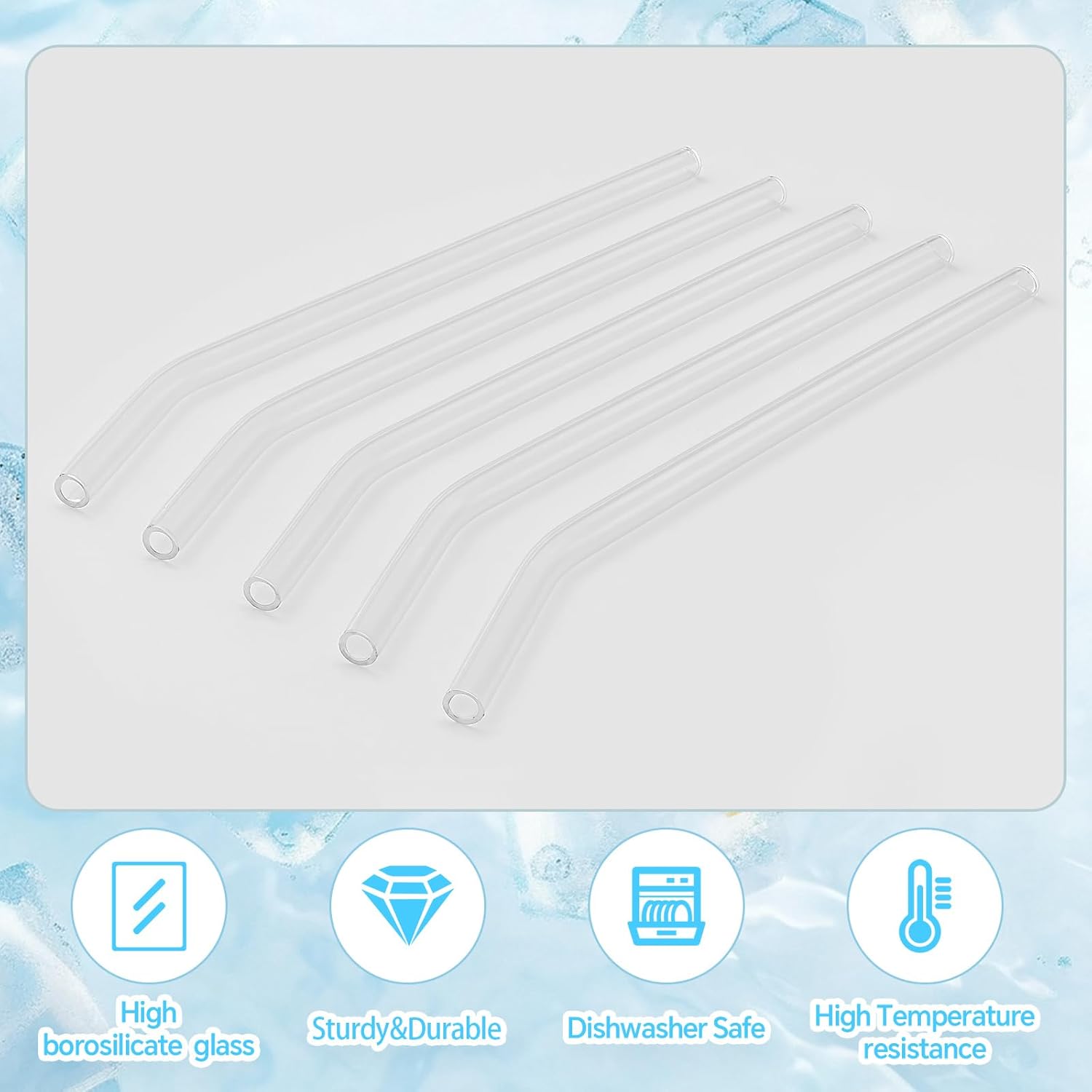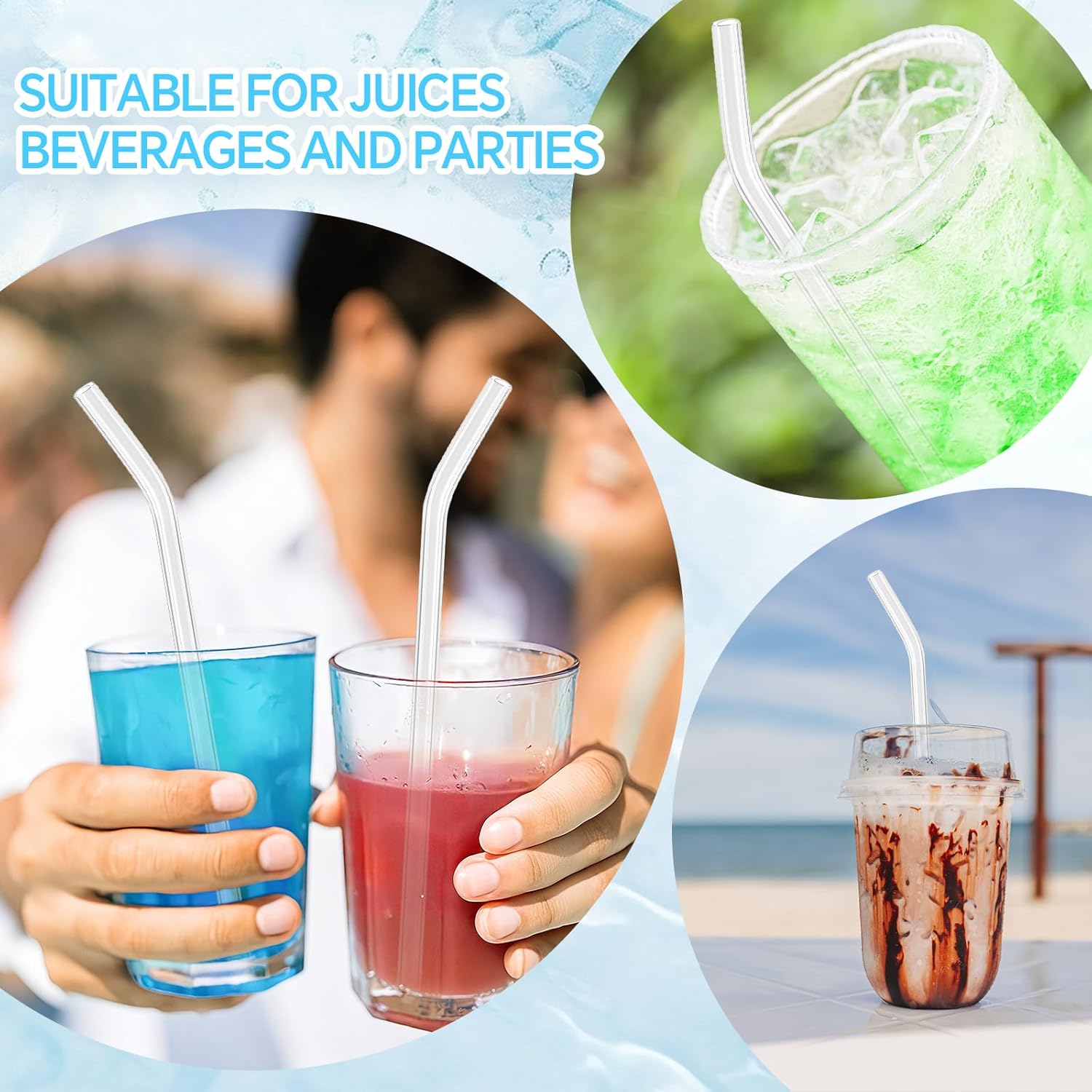12 Pcs Reusable Glass Straws 8"x 8 mm Bent Glass Drinking Straws with Cleaning Brush for Tea, Smoothies, Milkshakes, Juices,Beverages(Clear)