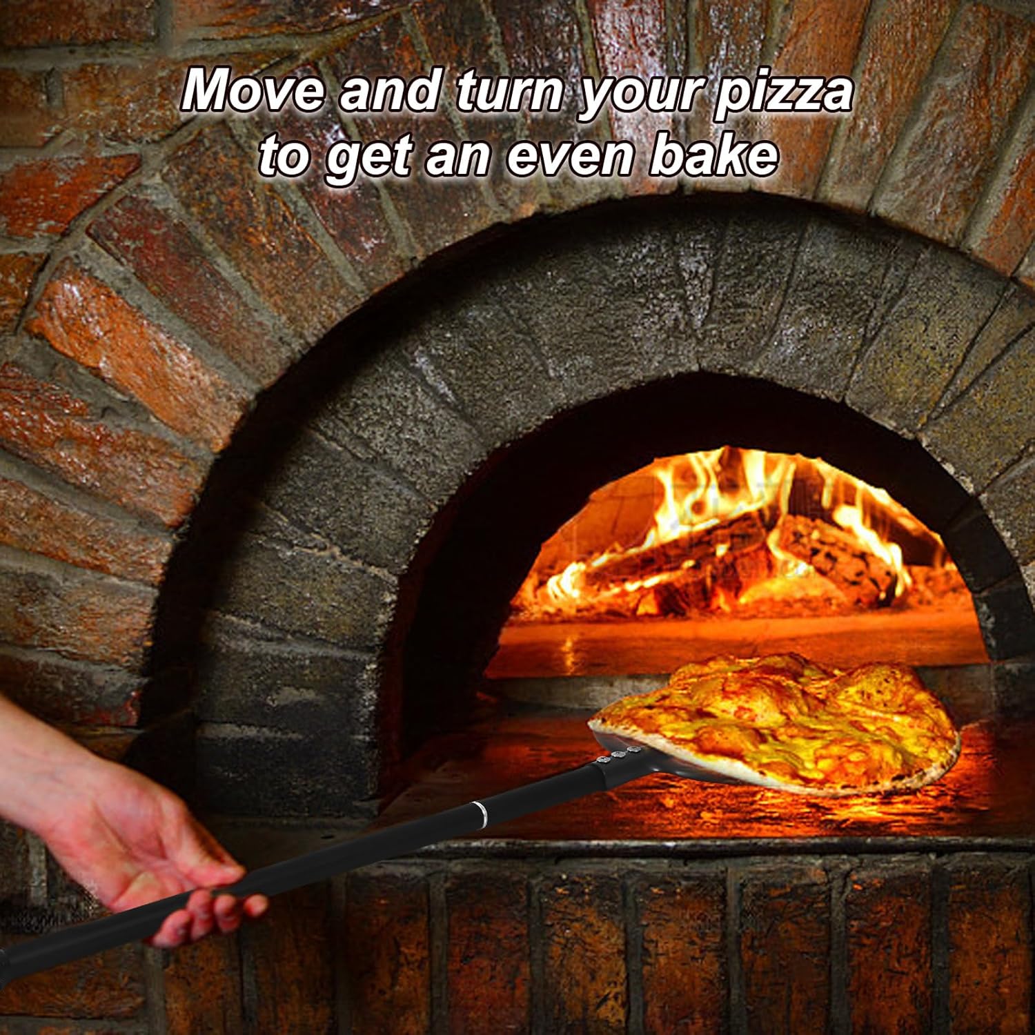 - EXTENDED HANDLE FOR SAFETY AND CONTROL: With a 38'' long handle, 47 inch overall, this pizza turning peel allows you to maintain a safe distance from the heat, protecting your hands from burns. The elongated handle also offers complete control over the baking process, allowing you to spin or remove the pizza with finesse.
