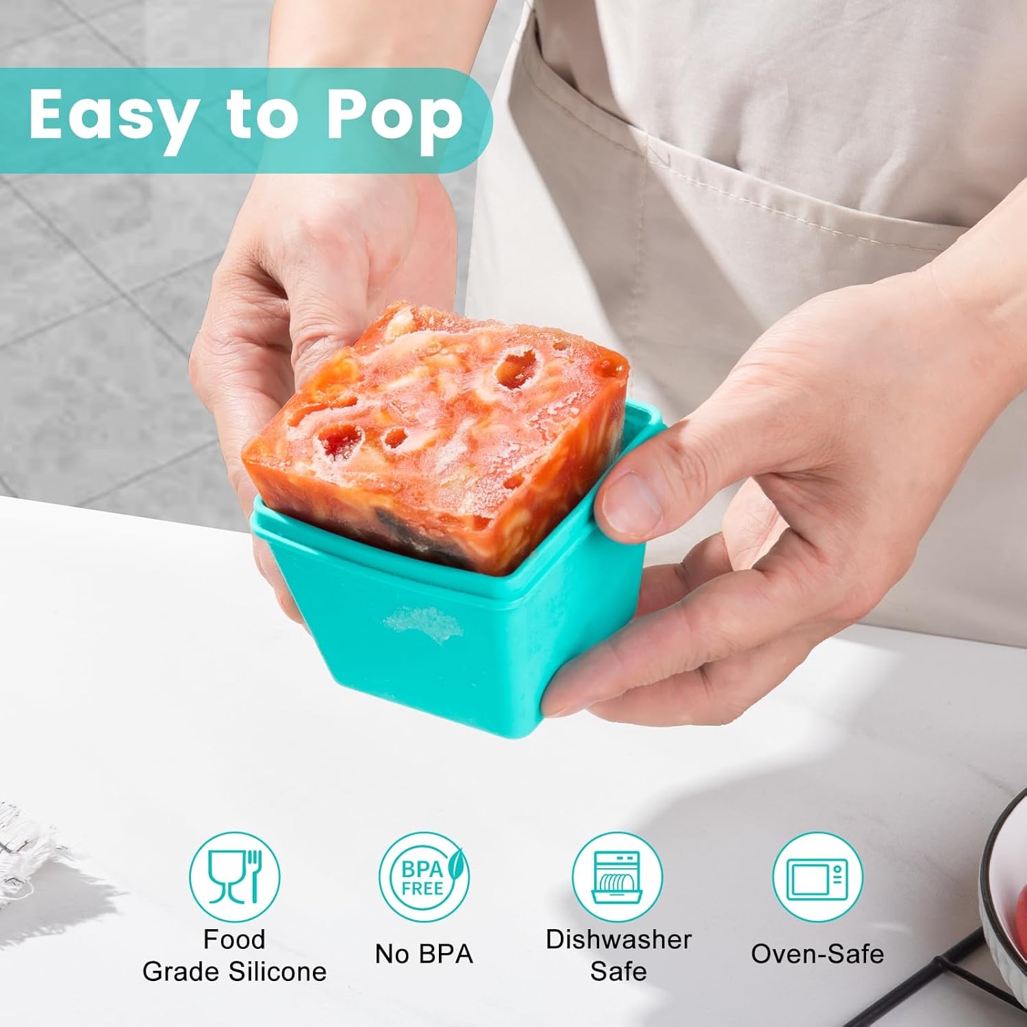 - Accurate Portion Control: Silicone freezer containers with measurement markings indicating capacities of 1-cup (250/125 mL, 8/4 oz), make portioning a breeze