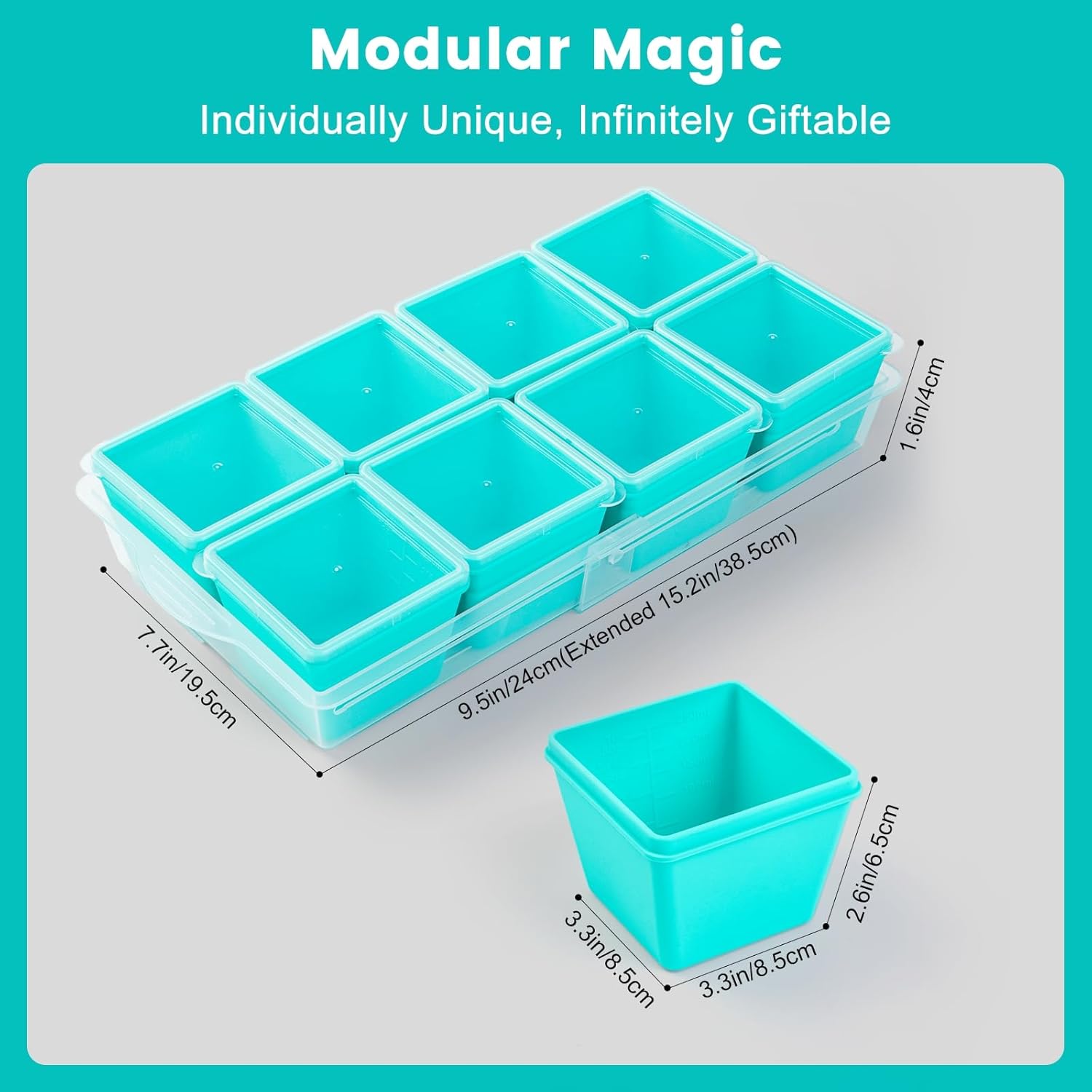 - Modular Soup Freezer Cubes Set: Includes 8-pack 1-cup containers with storage base. Ideal for portioning, storing, and freezing large batches of homemade meal prep simultaneously. All trays are separate for easy cleaning, dishwasher safe