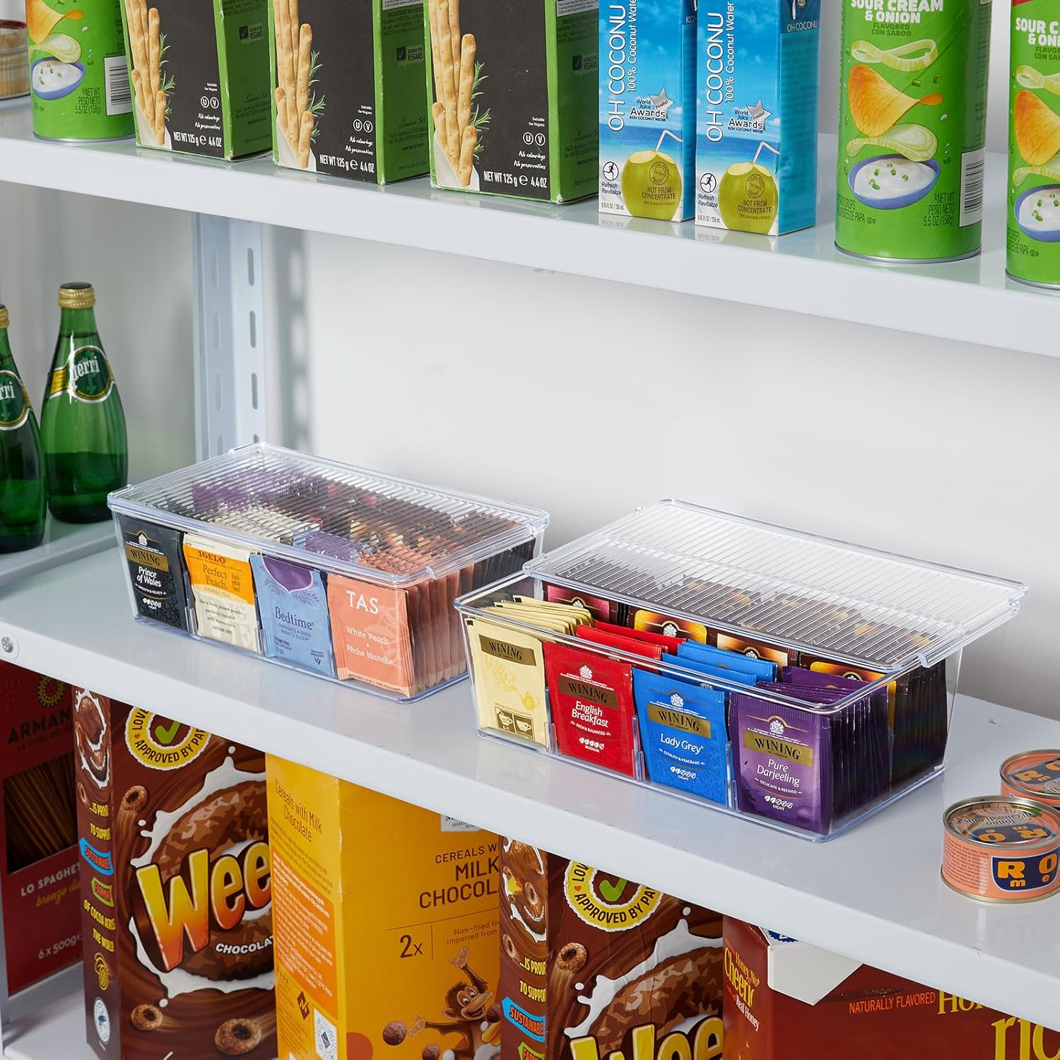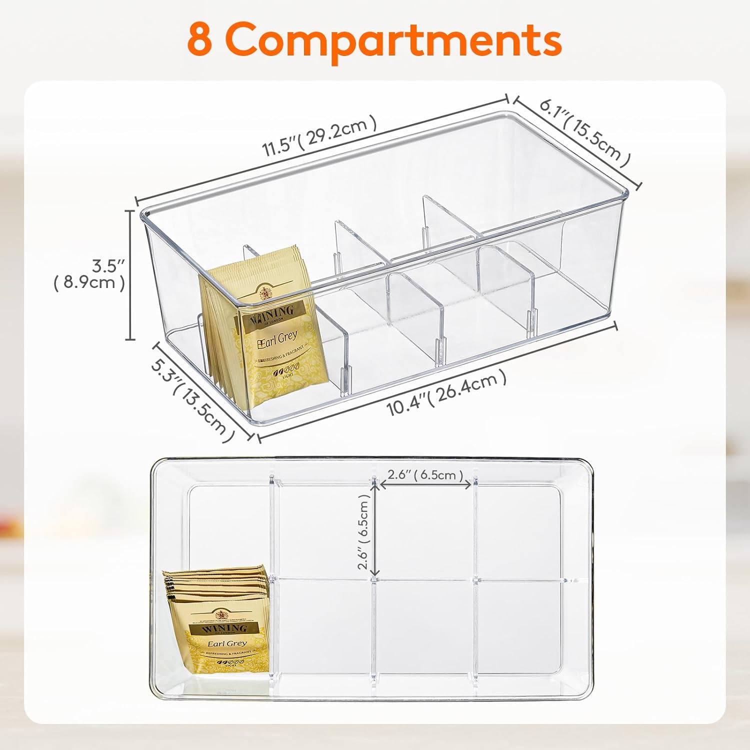 - Customized Storage: The tea organizer comes with 4 removable divided sheets in each tea bag storage box, when installing, place the long board first, and then place the short board. Allows you to customize the storage space