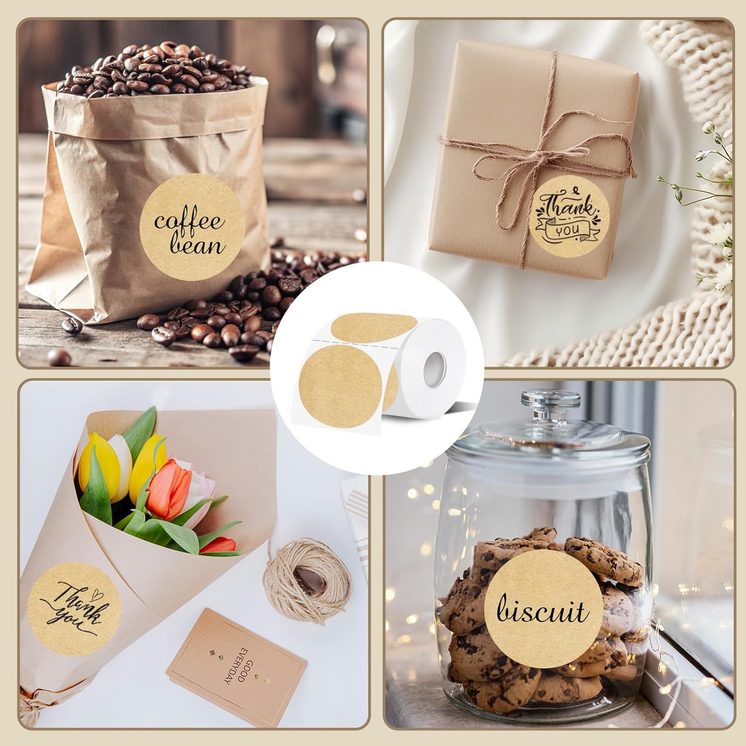 Thermal Label,3 Inch Kraft Paper Round Thermal Printer Sticker,Self-Adhesive Round Direct Thermal Labels,Thermal Stickers for DIY Logo Design,Name Tag (300 Labels/1 Roll)