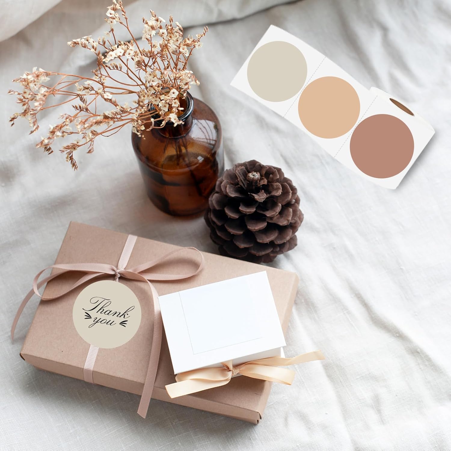 Thermal Label,3 Inch Beige Gradient Round Thermal Printer Sticker,Self-Adhesive Round Direct Thermal Labels,Thermal Stickers for DIY Logo Design,Name Tag (300 Labels/1 Roll)