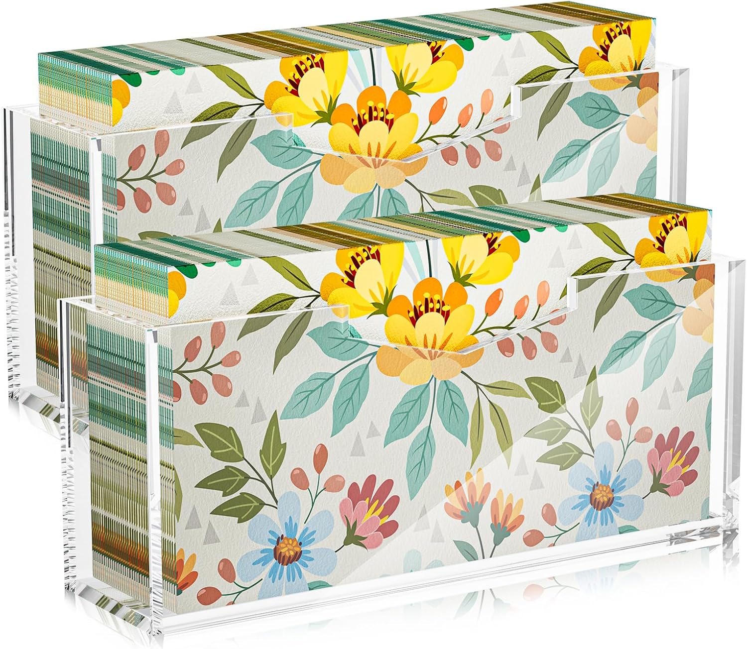 HELPLEX Clear Acrylic Guest Towel & Napkin Holder - Waterproof Splash-Proof Vertical Design for Bathroom, Kitchen, Dining Table - Home Hotel Office Organizer (2-Pack)
