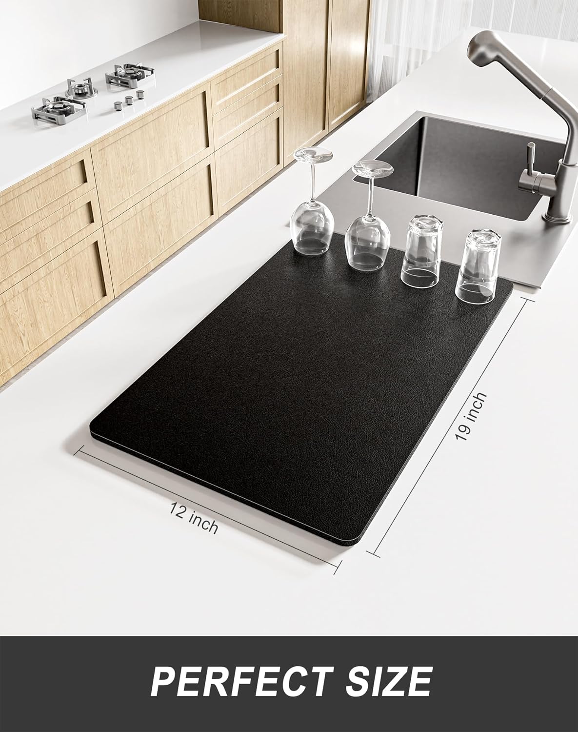 - Superior Water Absorption: Dish drying pad is crafted with highly absorbent advanced nano material for maximum water absorption, efficiently drying dishes, glasses, and cookware instantly. The heat-resistant surface protects your countertops from damage
