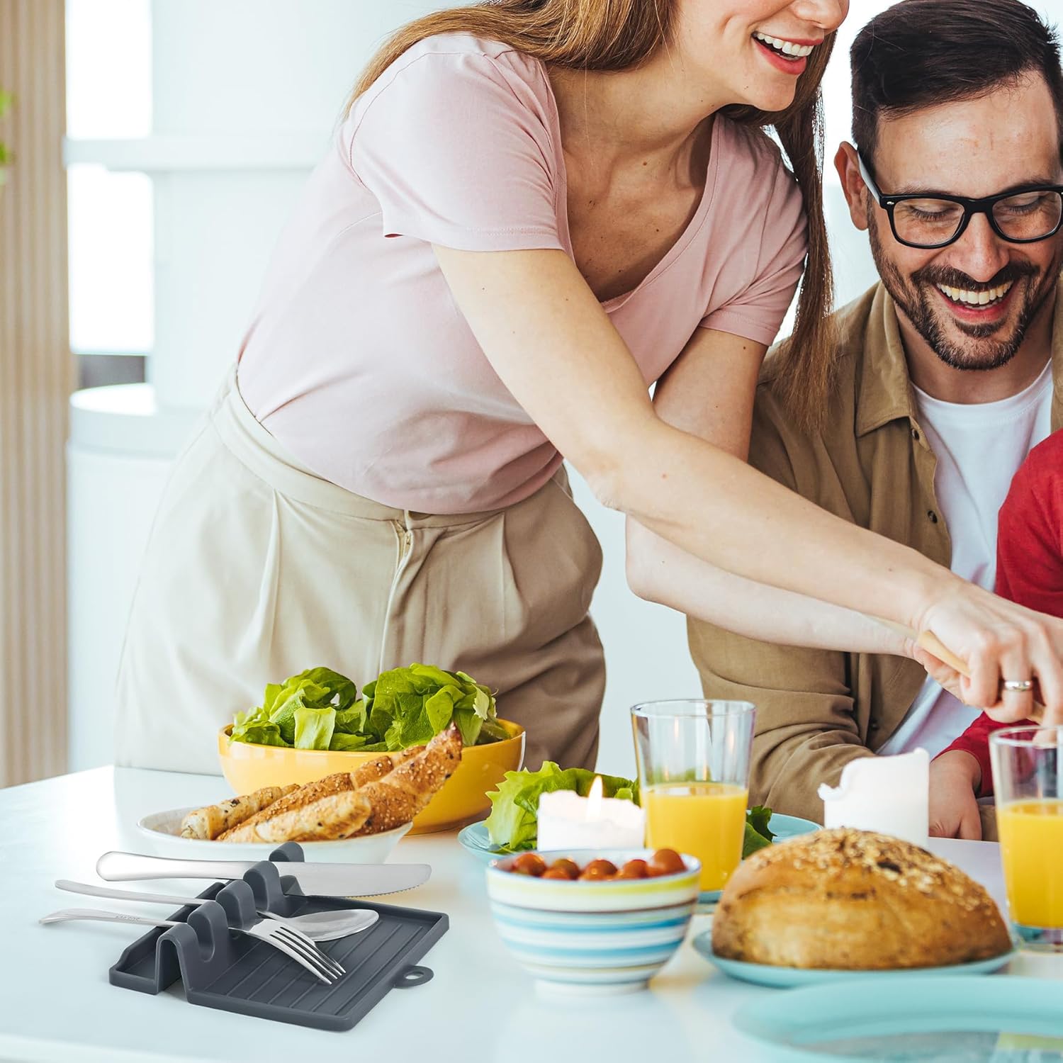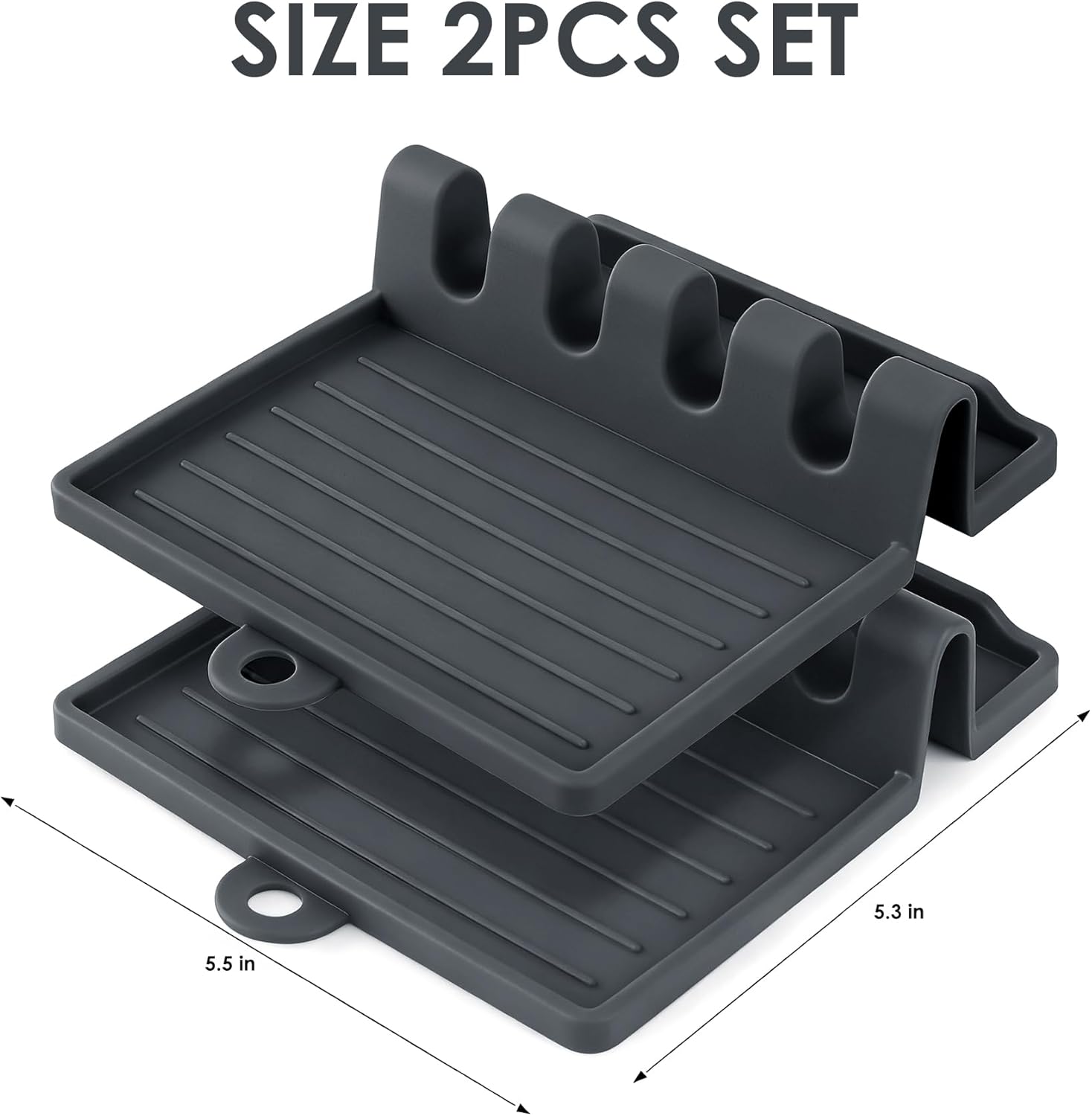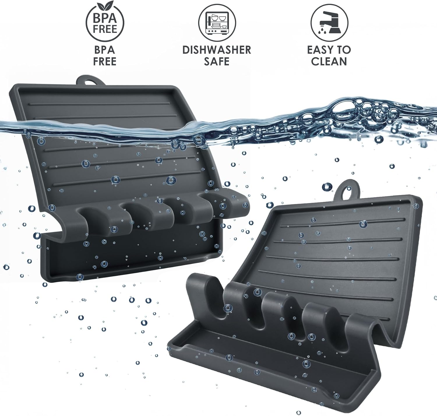 600°F Heat Resistant Silicone Spoon Rest, Multiple Utensil Rest, BPA Free Easy to Clean Dishwasher Safe, (Grey)