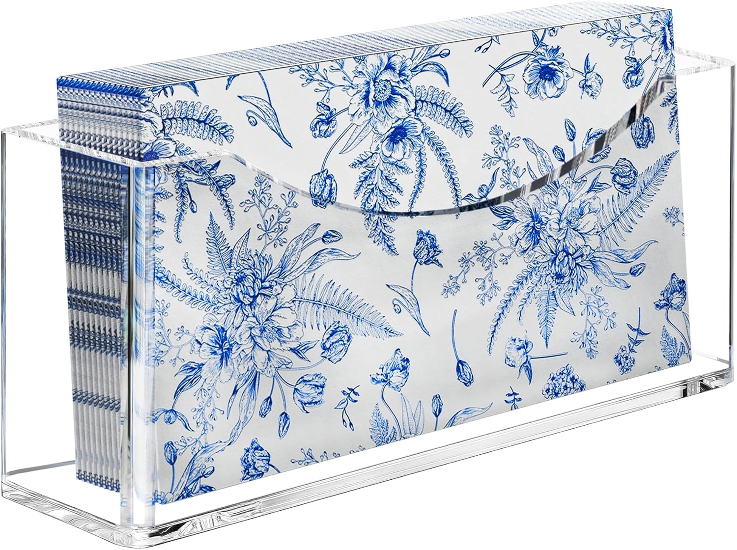 - [ELEGANT DECORATION] Simple and fashionable design, suitable for mainstream tissue brands, the napkins holder can clearly display holiday limited patterns and hand-painted style tissues, instantly enhancing the decorative effect of dining tables, coffee bars, and sinks
