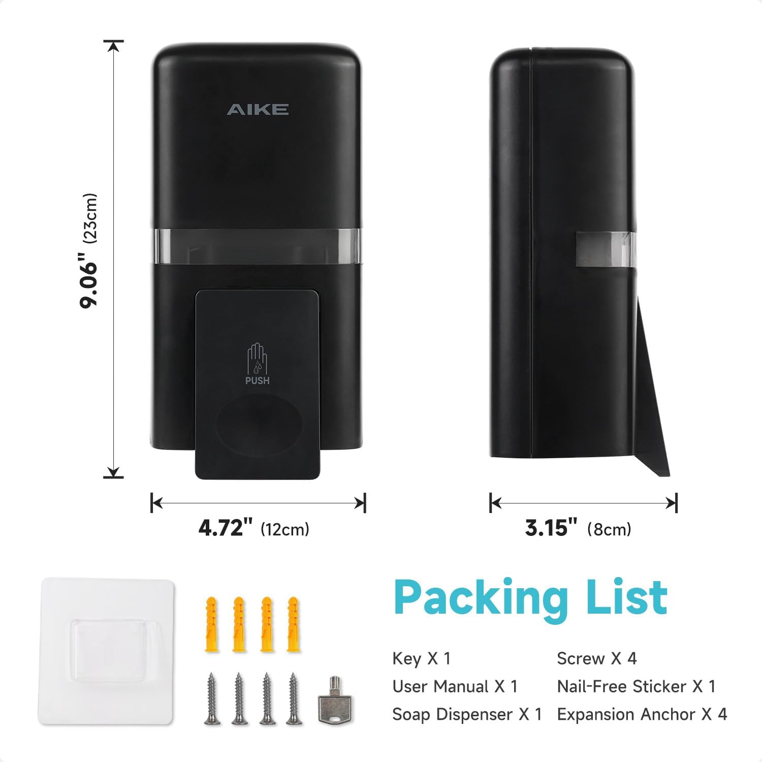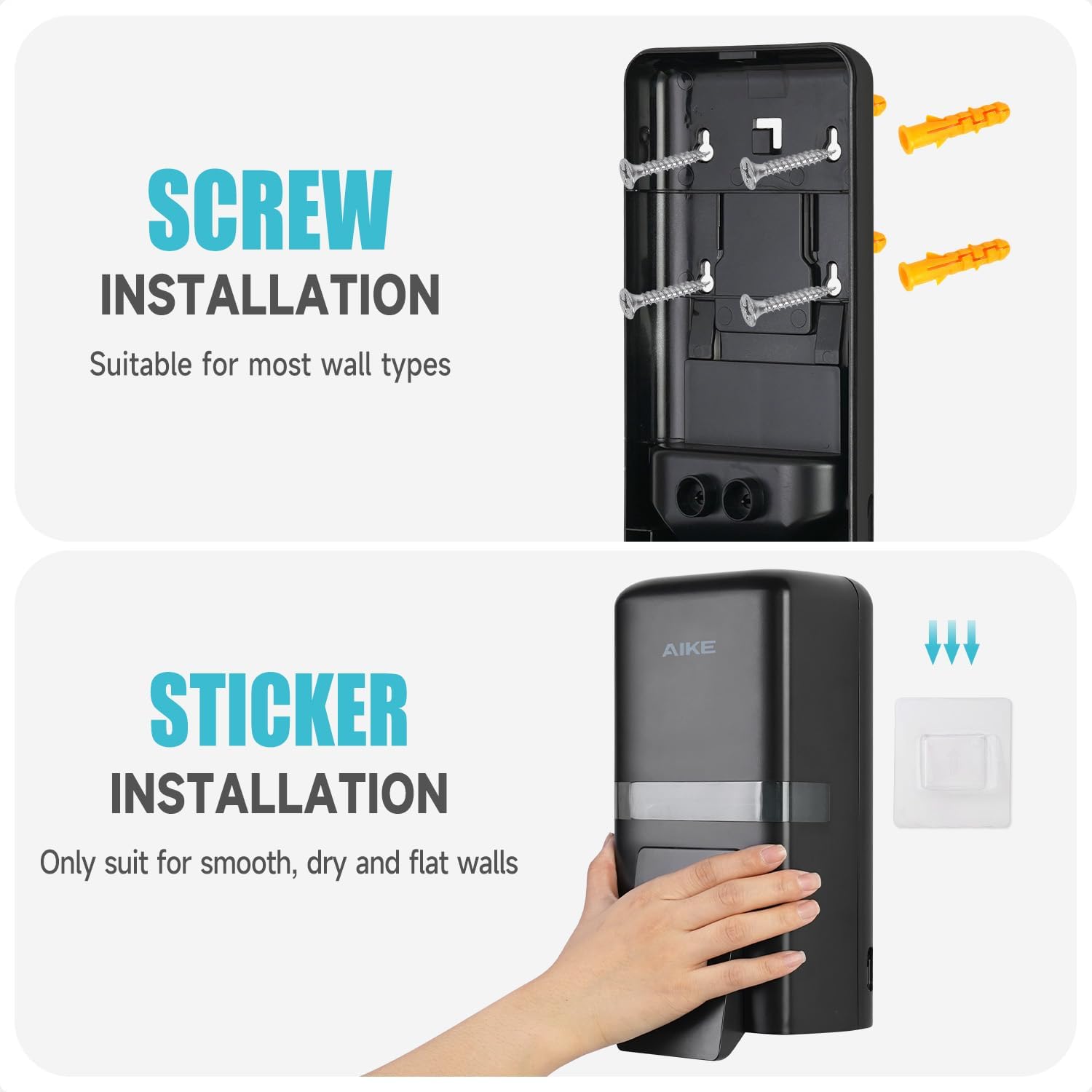 AIKE Wall Mount Liquid Soap Dispenser, 27oz Large Capacity with Extended Pump for Commercial Bathrooms(Black)