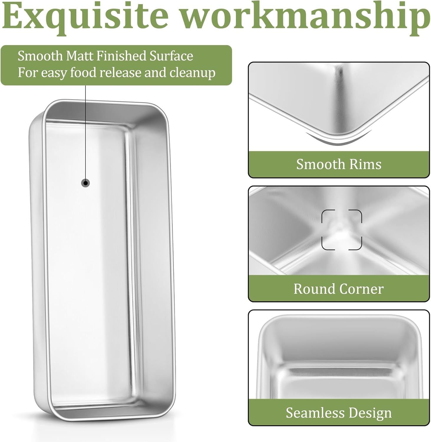 - BAKING EVENLY & FASTLY: High hardness stainless steel structure with flat bottom allows the meatloaf pan to conduct heat evenly and quickly, Deliver uniform and great baking and roasting results, Our bread pan can withstand high temperature up to 450°F, Suitable to be used in oven for various kinds of baked goods