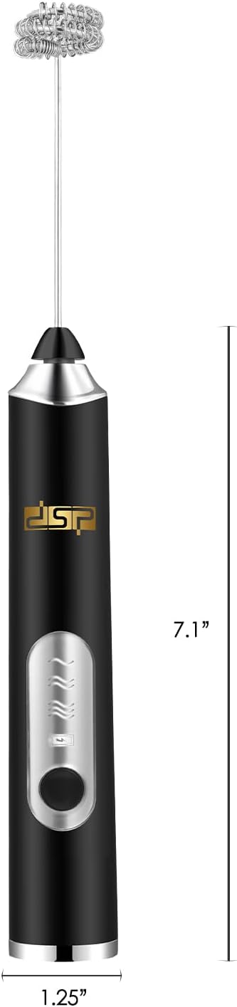DSP Handheld Milk Frother Rechargeable, Electric Whisk for Coffee, 2 Stirring Rods 3 Speed Adjustable, Low Noise Drink Whisk for Lattes, Matcha, Hot Chocolate, Egg (Midnight Black)
