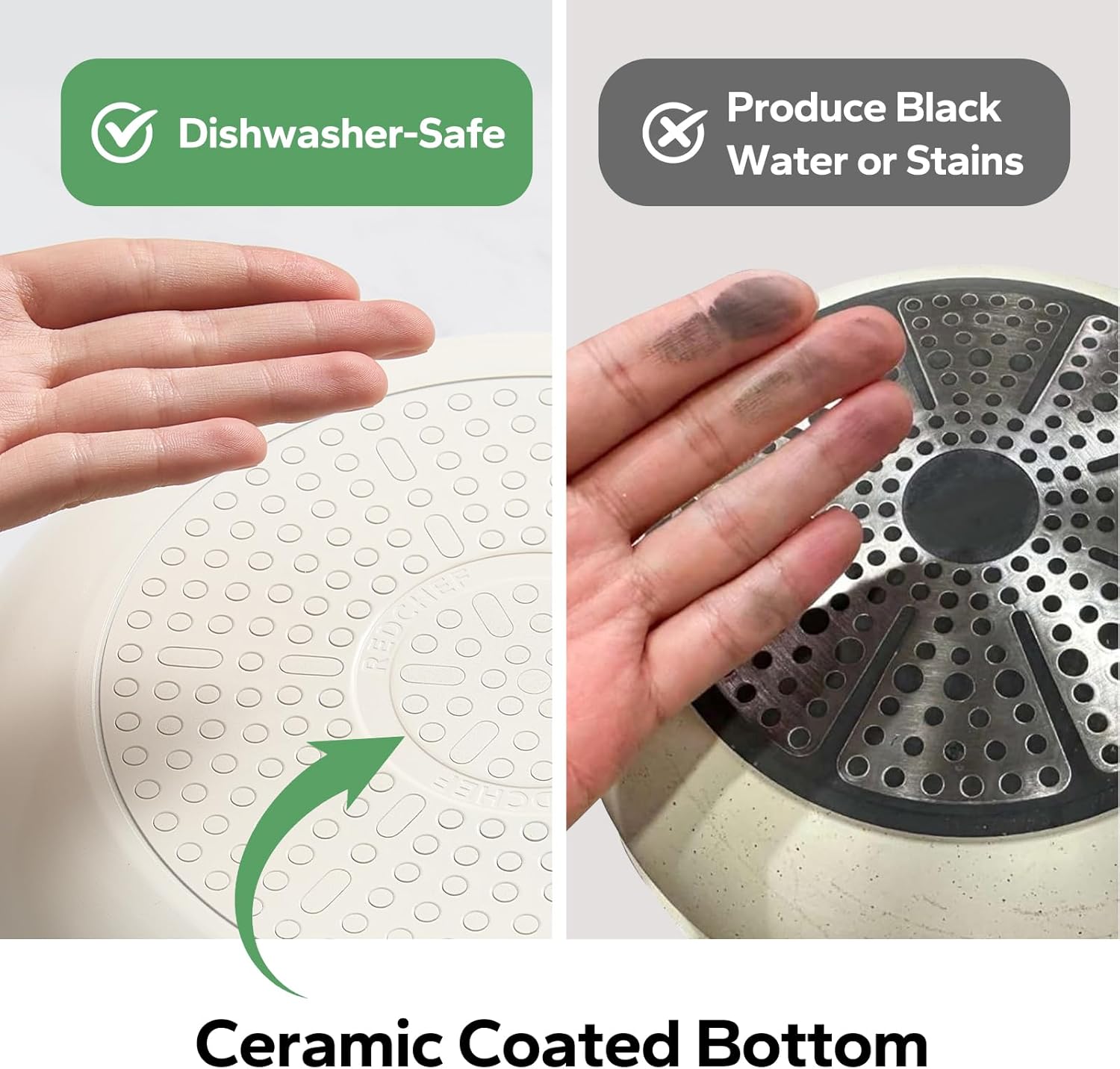 - RAPID & EVEN HEAT DISTRIBUTION: Precision-engineered with bottom, our ceramic cookware set ensures uniform heat distribution, eliminating hot spots that can disrupt your cooking. This professional-grade design disperses metal thickness consistently across the entire nonstick cooking skillet, facilitating swift and even cooking of your dishes