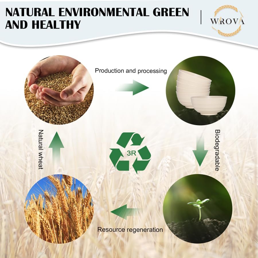 - 【More Thick & Large Capacity】The reusable wheat straw bowls are designed with thicker and smooth round edges which gives you a good touch and prevent deformation. Our wheat straw bowls set have very large capacity(60 Oz) which avoid spilling your food. It is perfect for cereal,salad,fruit,rice,noodle and so on.