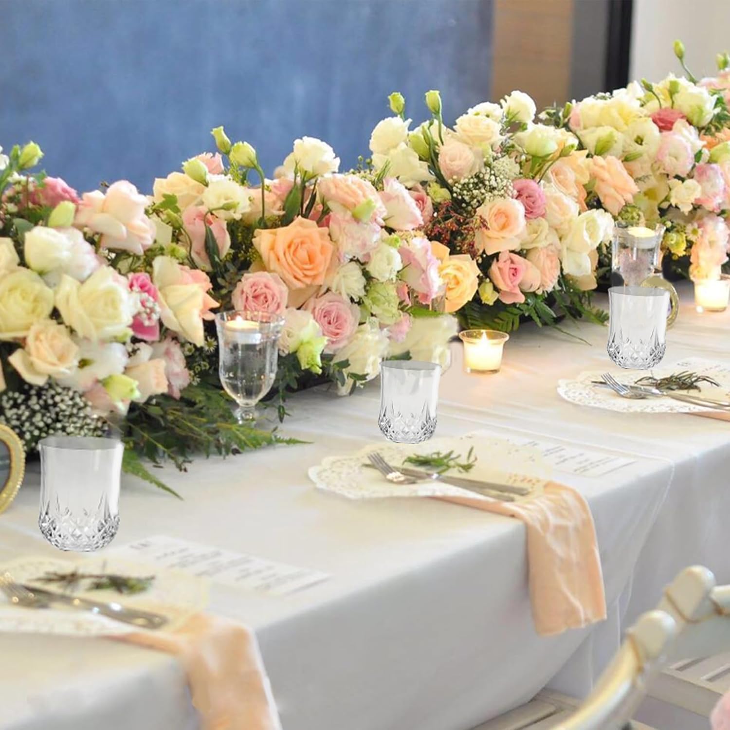 - 🍷🍷🍷 Package Includes: 48 Transparent elegant and exquisite stemless cups. Each stemless wine glass is meticulously crafted with retro patterns. The abundant quantity can meet the needs of your wedding, party or other large-scale events. The stemless cups add a touch of refinement to any table decoration