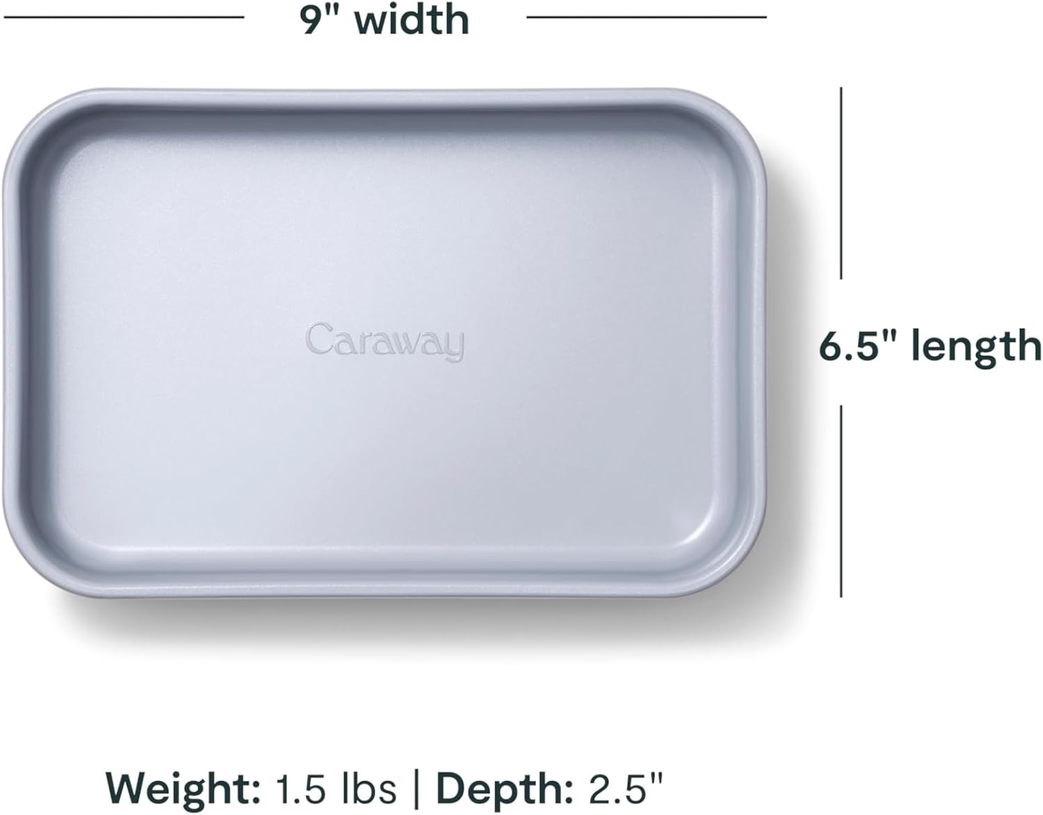Caraway Nonstick 9” x 6.5” Small Rectangle Baking Pan Duo – Non-Toxic, PTFE & PFOA Free – Aluminized Steel Core – Deep Ceramic Baking Pan for Casseroles, Lasagna & More - Sage