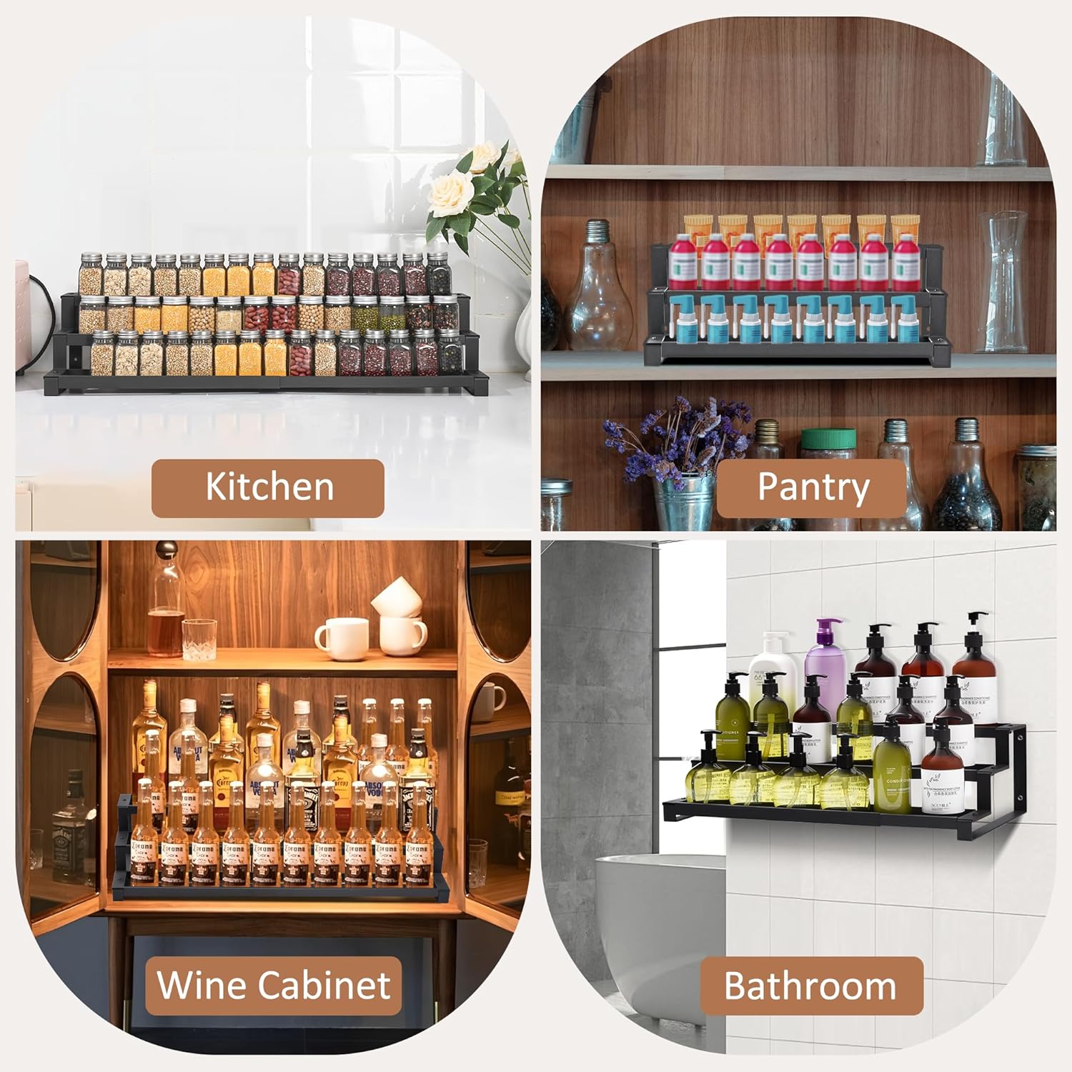 - For More Than Just Spices: Beyond spices, store pantry cans, mason jars, skincare, perfumes, colognes, or bathroom essentials. Mounts vertically as a wall spice rack when counter space shrinks. From kitchen cabinets to bathroom shelves—adapts anywhere!