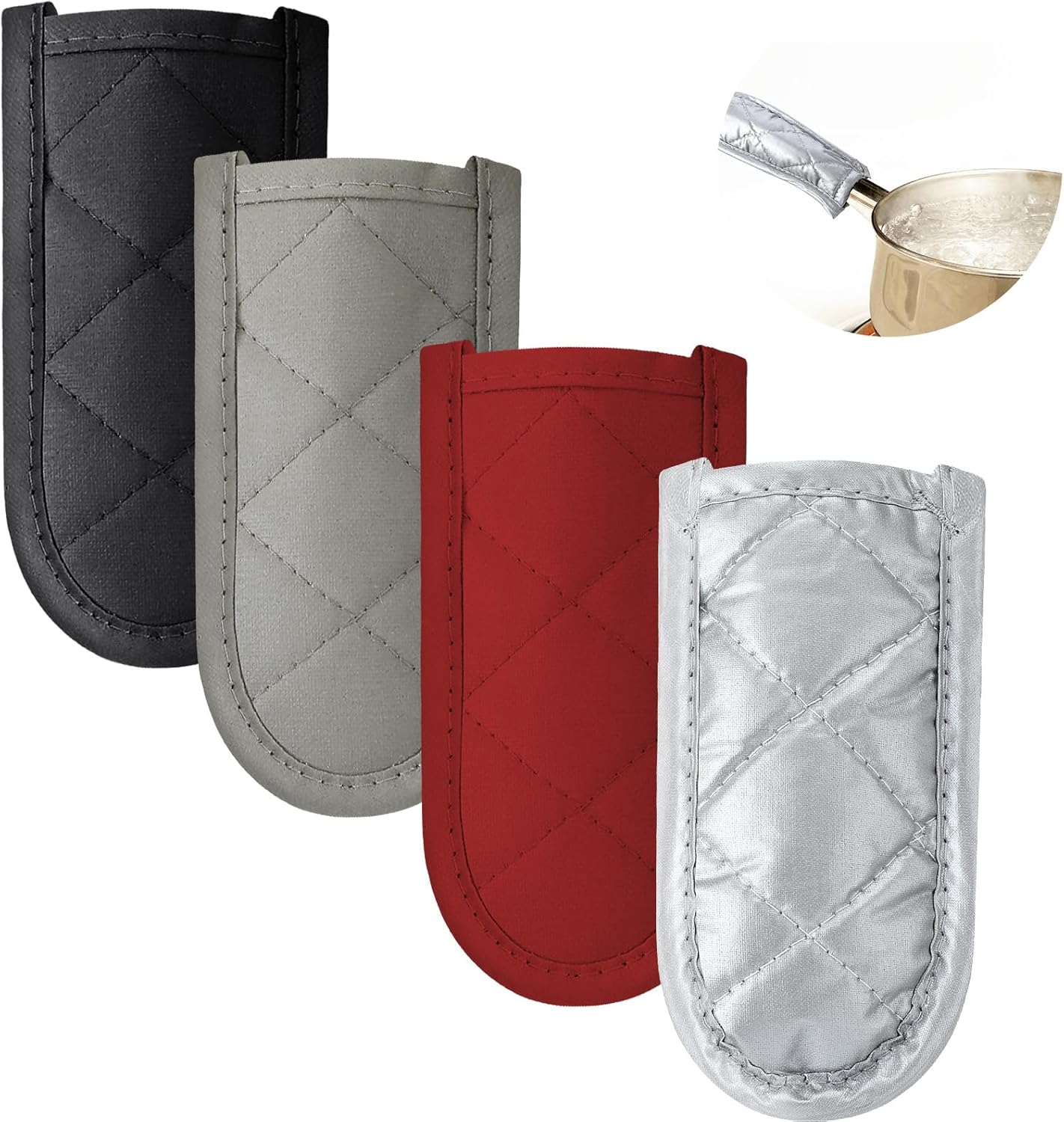 - What You Receive: you will receive 4 pieces of pot handle covers in 4 different styles, good combination and functional kitchen tools to meet your use; Colors: black, black and white checkered, black stripes, red stripes