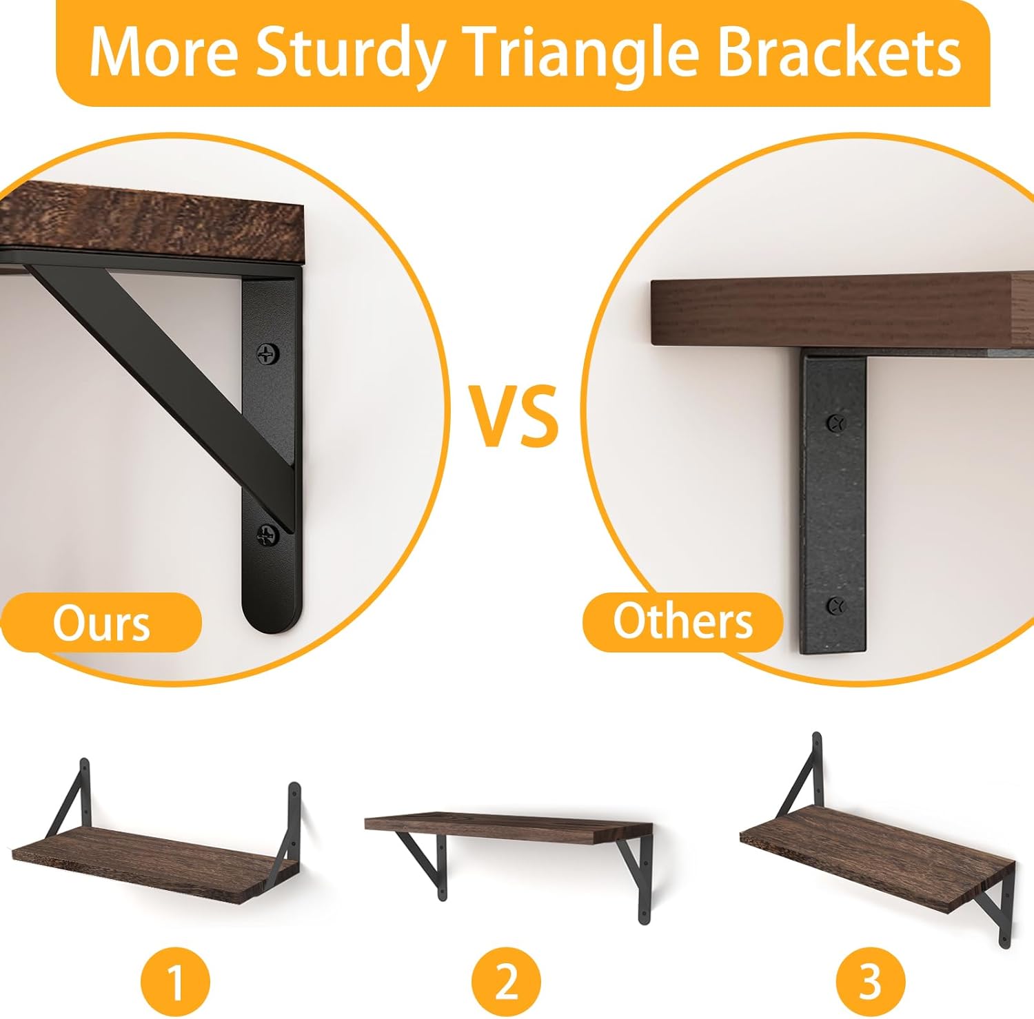 - 【Sturdy & Easy to Assemble】The Triangle shaped metal brackets are more sturdy, with a capacity of 40Lb. YGEOMER wood floating wall shelves for bathroom are super sturdy, very easy to install, all hardware and user manual was included.
