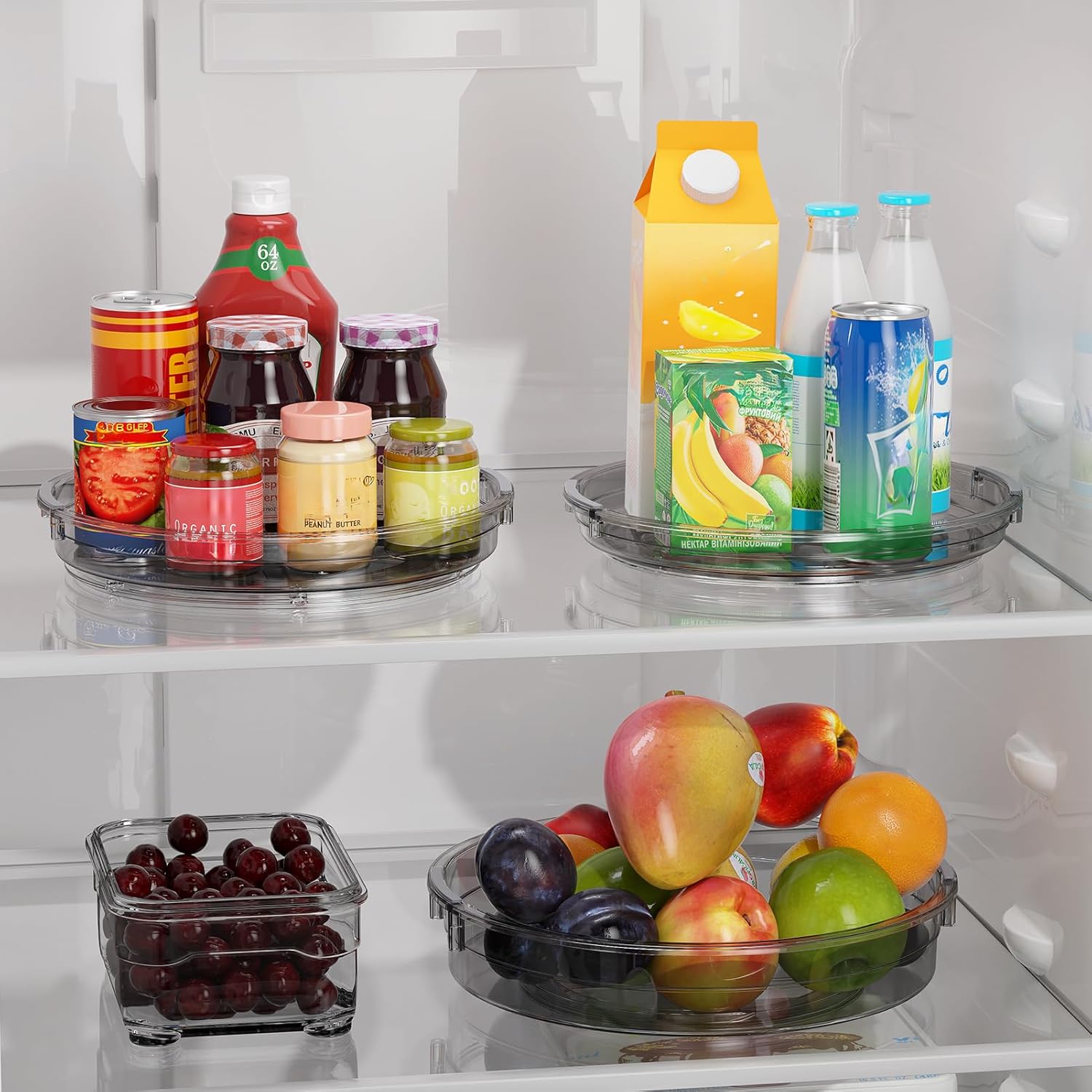 - Versatile Use and Space Saving: This Lazy Susan organizer is great for cabinet, kitchen countertop, fridge and pantry organizers and storage, keeping condiments, snacks, cans neatly. it's also a medicine cabinet organizer, spice organization for cabinet, bathroom makeup perfume spinning organizer. Elevates the functionality and efficiency of every space