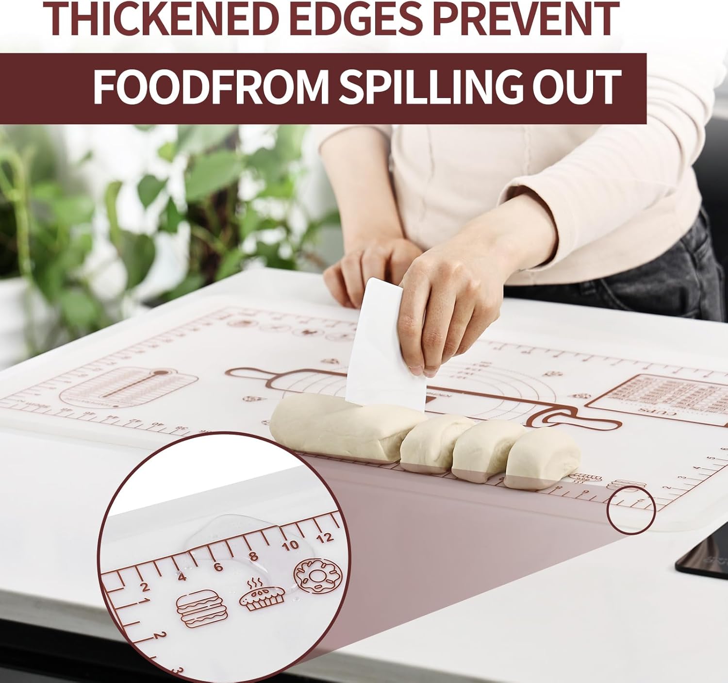 Silicone Baking Mat, Extra Thick Dough Rolling Pad with Measurements and Edge Heightening, Non-stick Food Grade Silicone Pastry Mat for Pastry, Bread, Cookies (Transparent, 20"L x 28"W)