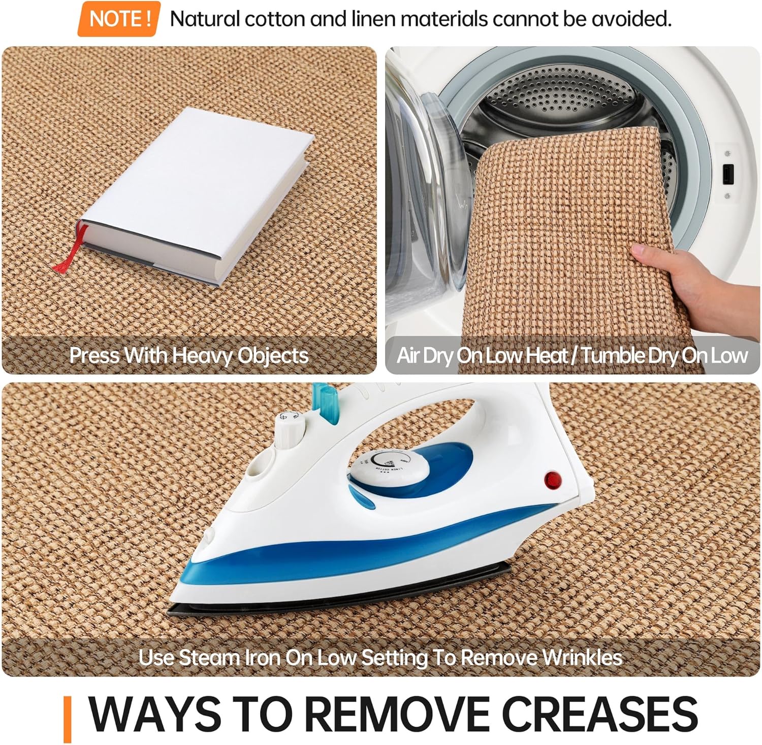 - Rugs for Kitchen floor:The surface of the kitchen mat has imitated linen surface,which is highly woven and dense, so you don't worry about your pet scratching it, and the tight edging makes this carpet look more elegant without snagging, convenient storage and beautiful kitchen decoration. But Attention: Natural linen wrinkles easily, with edges being especially susceptible, so highly recommend you to use iron steam the remove it.