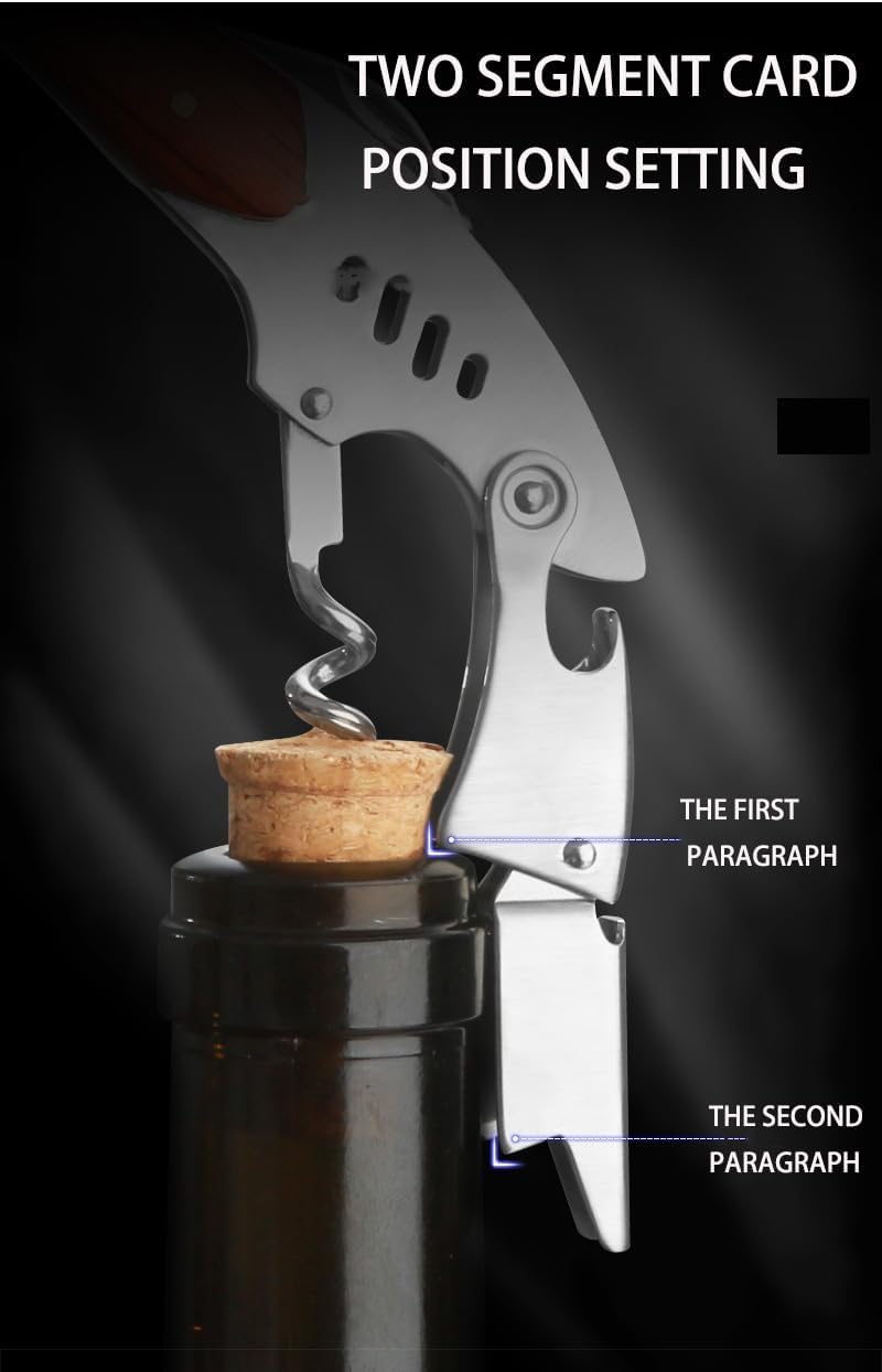 - The wood handle looks stunning and it also provides extra grip to prevent slipping which holds much better than most all metal grips.Makes popping that cork as easy as 1, 2, 3!