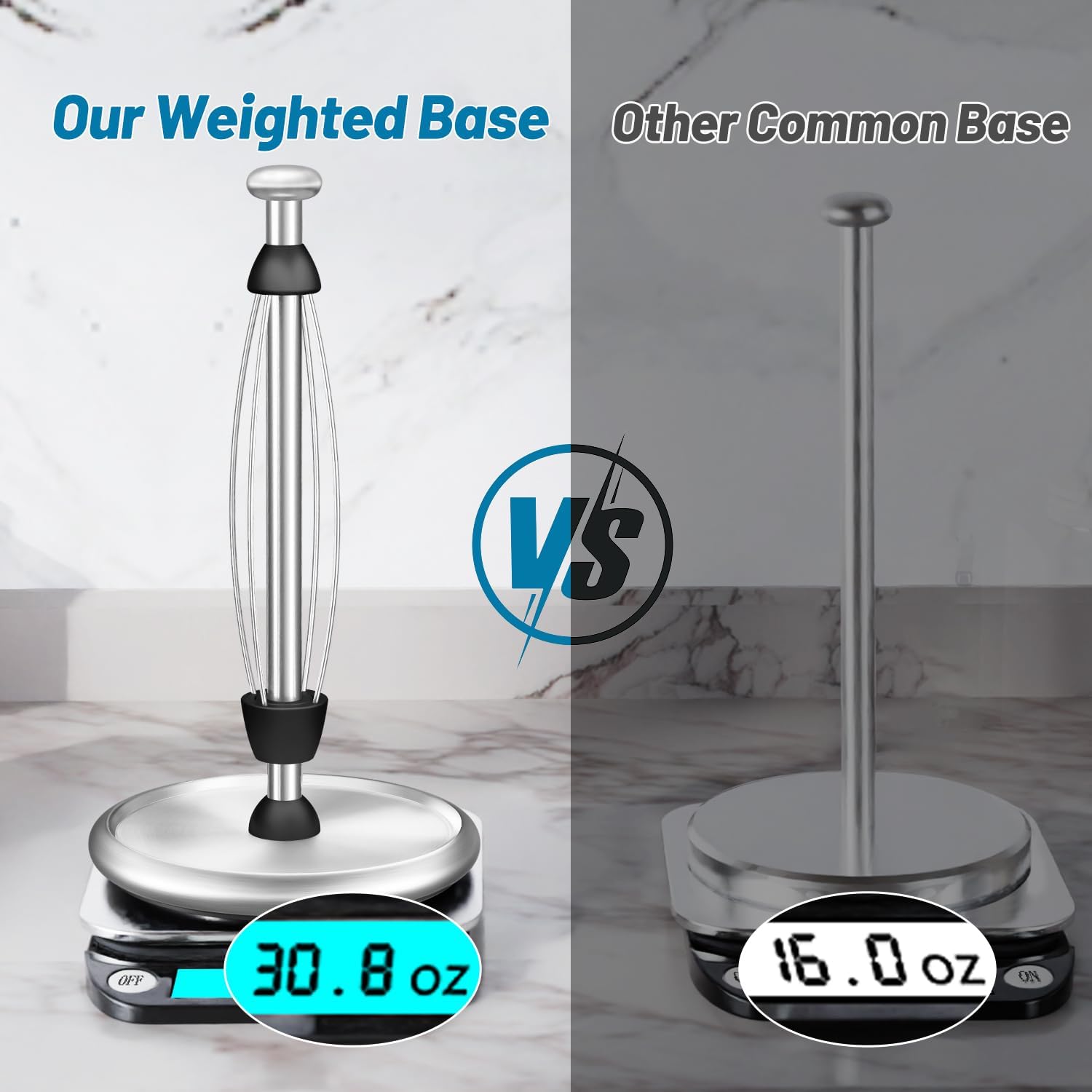 - 【EASY TO INSTALL】VEHHE paper towel stand is easy to assemble. Just screw the rod into the base. Within a few seconds, you can get a complete tissue holder. Please feel free to use it, if there is any problem, please contact us in time!