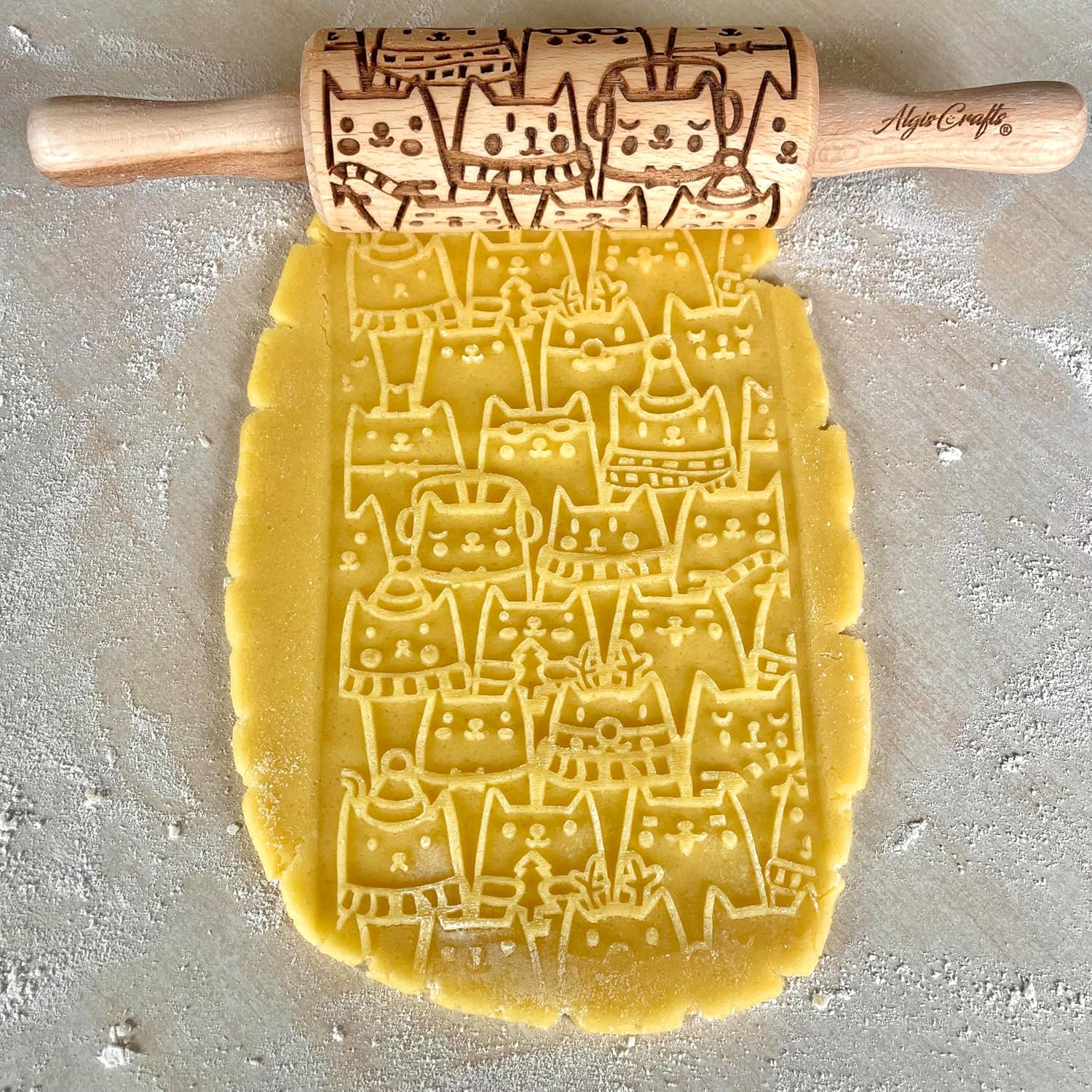 CATS 3 Mini Embossed Rolling Pin Set – Wooden Laser-Engraved Textured Rolling Pins for Cookies, Modeling Clay, Ceramics – Various Cat Patterns by Algis Crafts