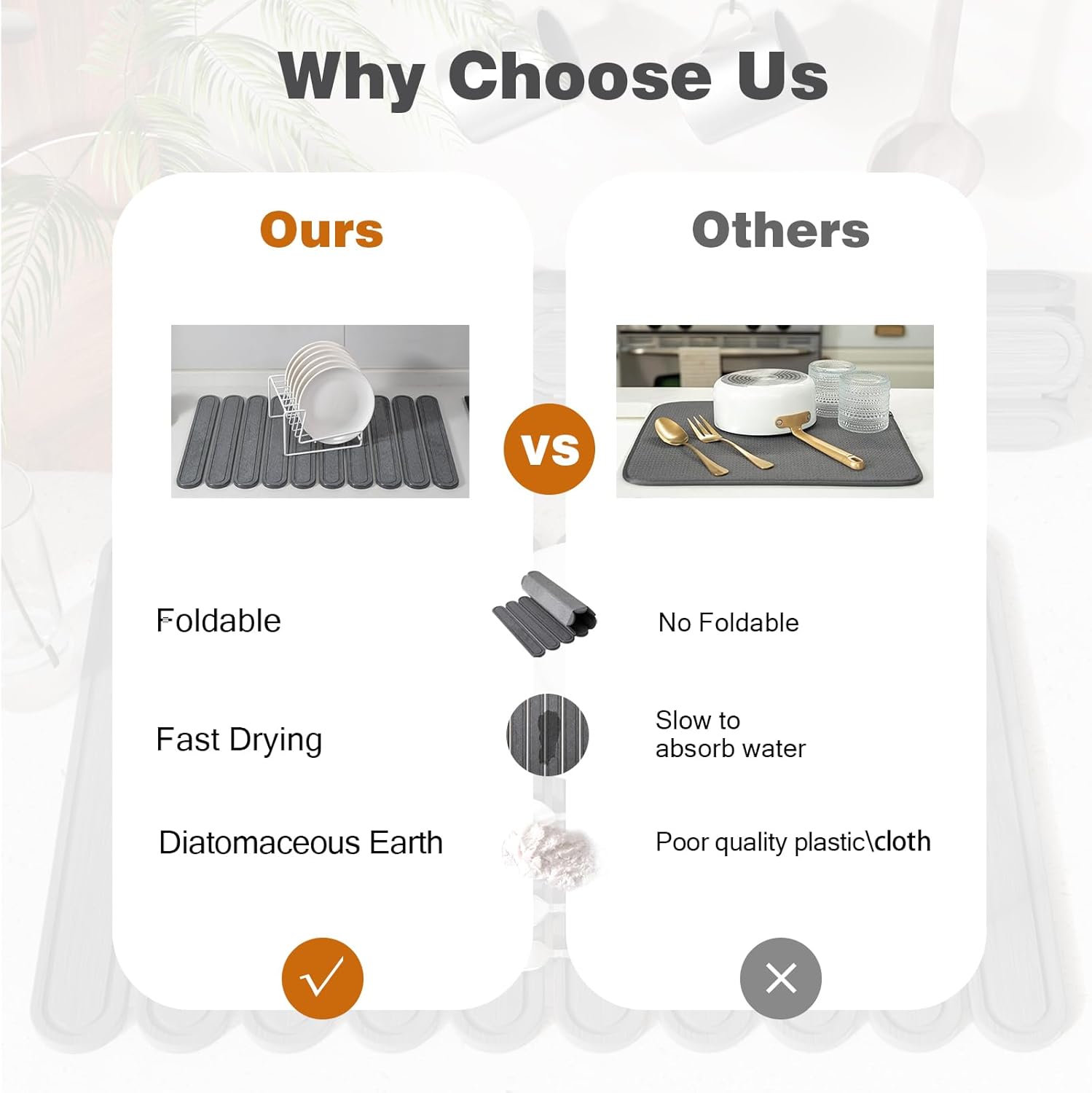 - FOLDABLE & SPACE-SAVING : This foldable large stone dish drying mat saves up to 60% of space when stored, making it perfect for compact kitchens. It can also be trimmed to any size, allowing full customization to suit your sink, countertop, or drying rack needs.
