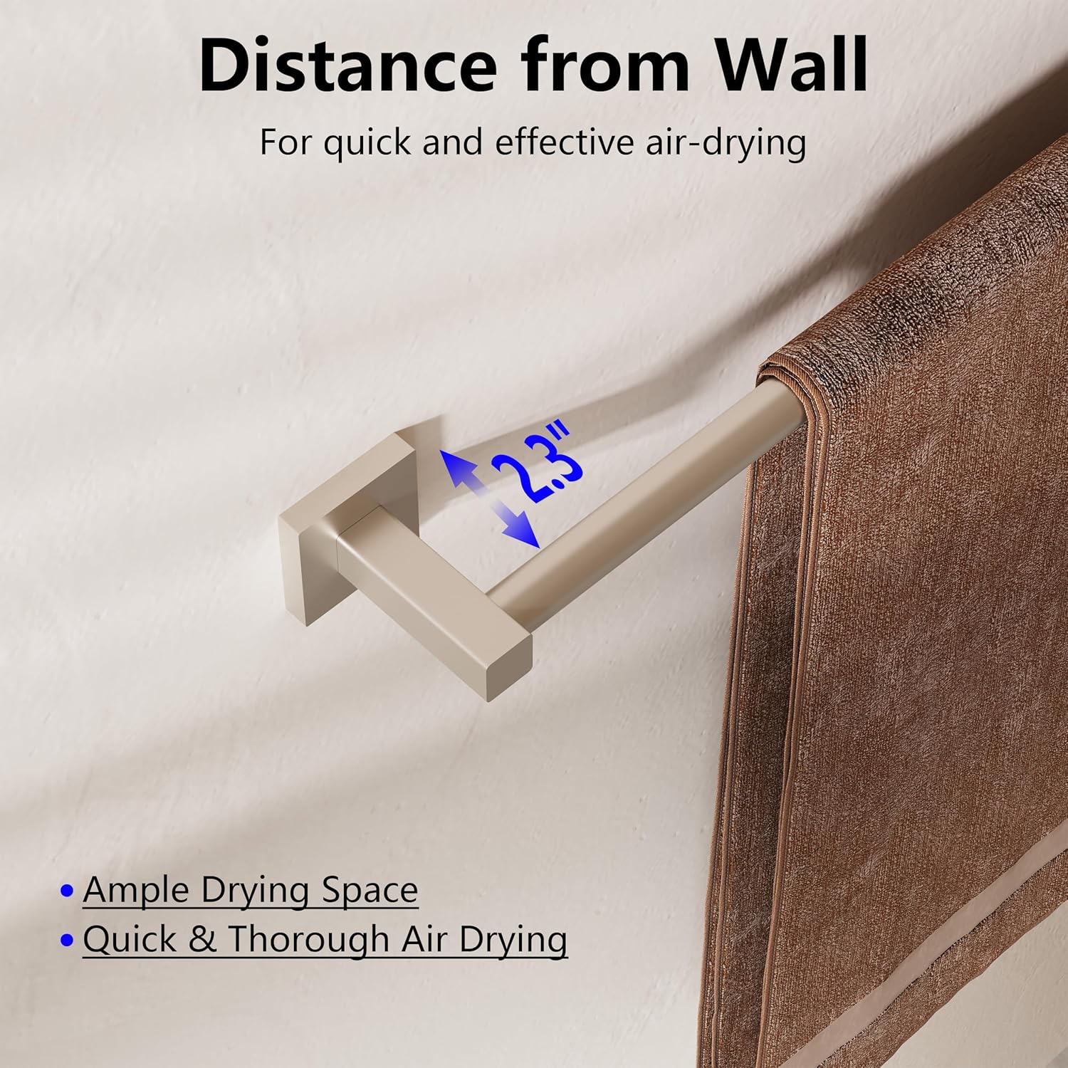 - 【Screw Design】-- Screwed Design making it more useful & load-bearing capacity than other models on the market. The sturdy screw base and thickened bar ensure that the towel bar will stand up to daily use and stay securely on the wall