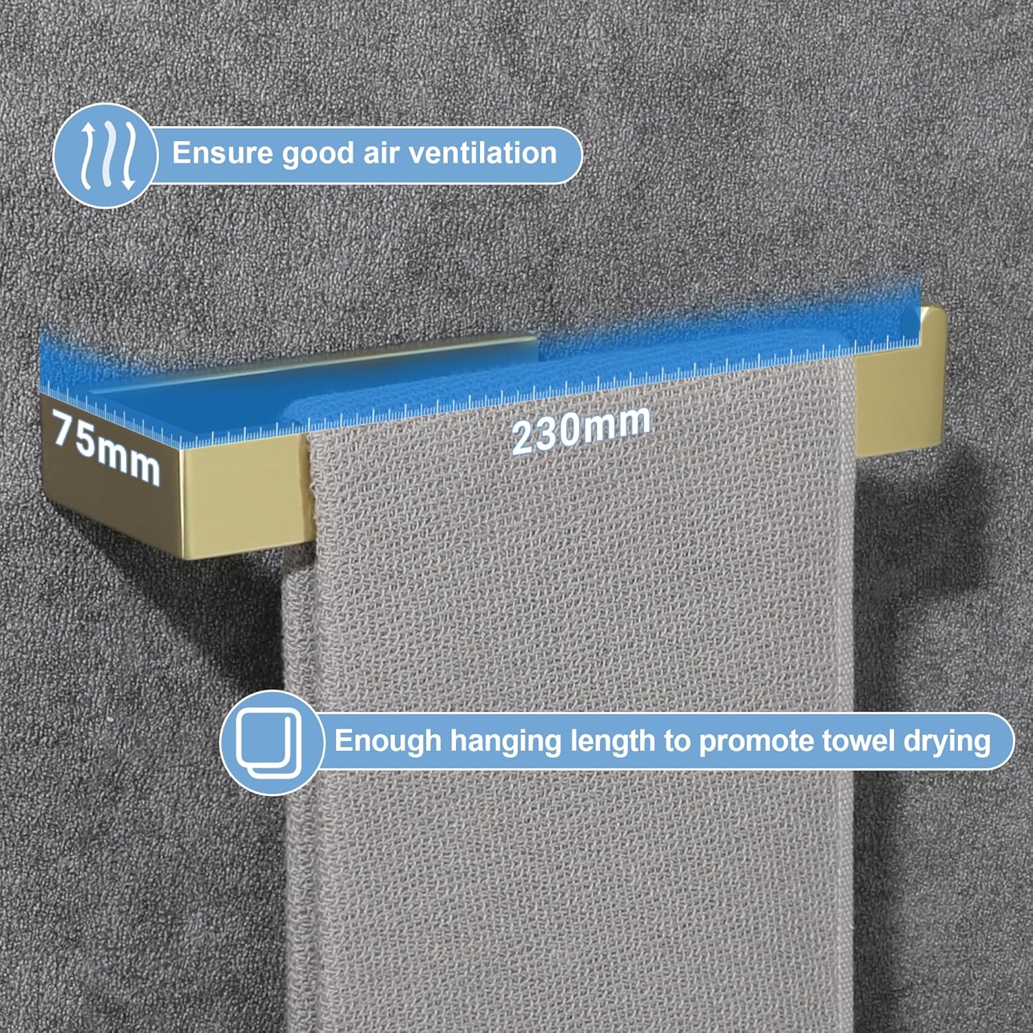 - WIDE APPLICATION - Perfect for shower, bathroom, kitchen, laundry room, cabinets, wash basins, etc. Please note, the brushed gold towel bar can only be fixed by drilling, not by pasting.