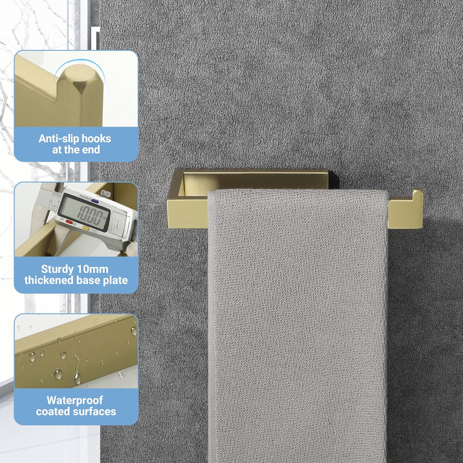 - DURABLE & RUSTPROOF MATERIAL - Most fixed hand towel rod for bathroom are easily deformed. Sayayo brushed gold hand towel holder is made of quality 304 stainless steel, with excellent strength and durability. Brushed stainless steel finish is built to resist daily scratches and tarnishing.