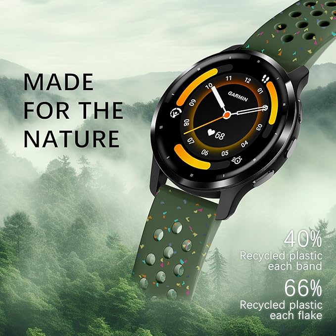 22mm Colorful Sport Silicone Band Compatible With Garmin Vivoactive 4/Venu 3/Venu 2, Recycled Plastic Soft Sport Strap Replacement for Forerunner 265/745/255/255 Music Men Women