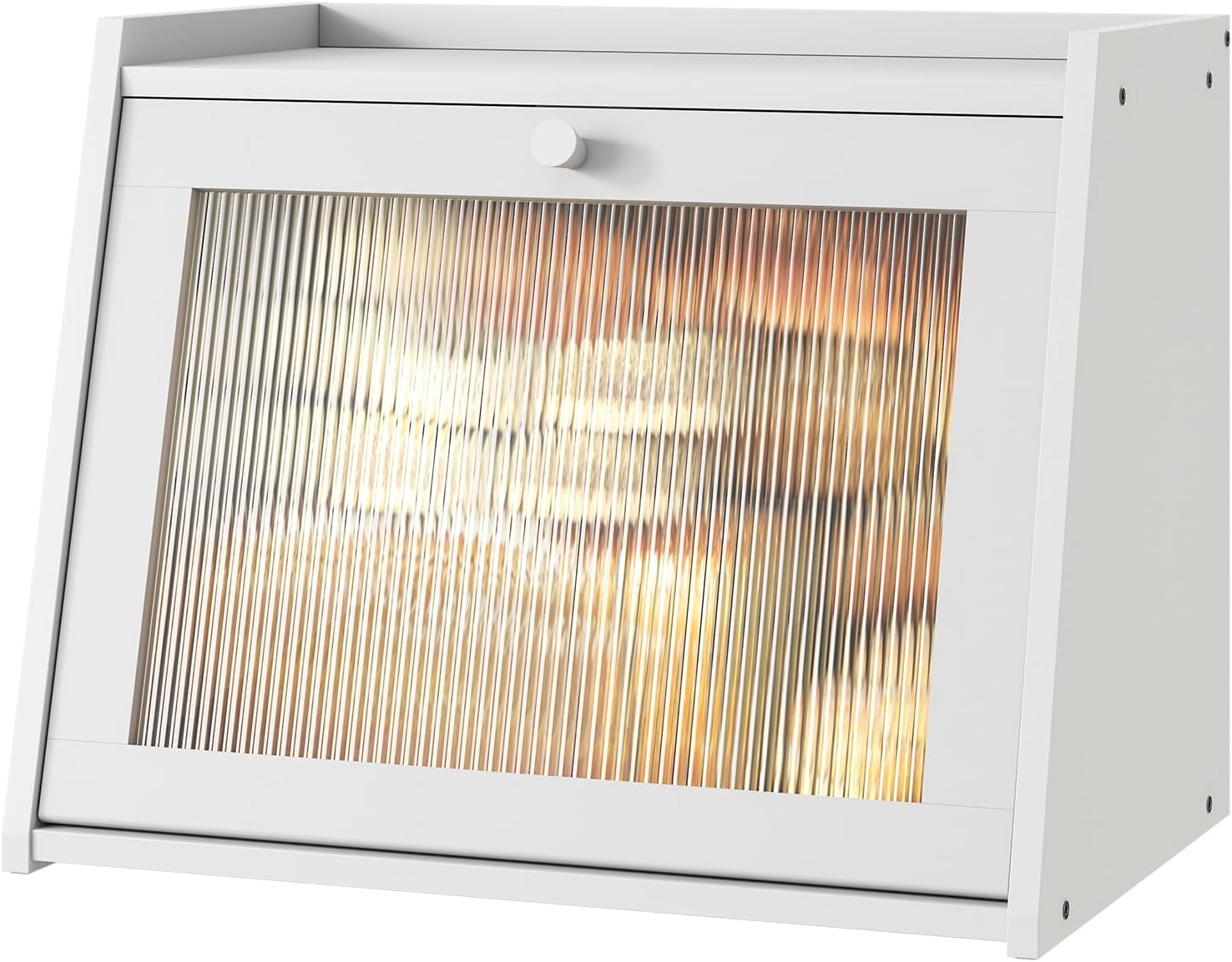 Large Bread Box for Kitchen Counter, White Bamboo Bread Storage Container with Wavy Arcylic Transparent Door, Bamboo Wooden Farmhouse Bread Box for Your House