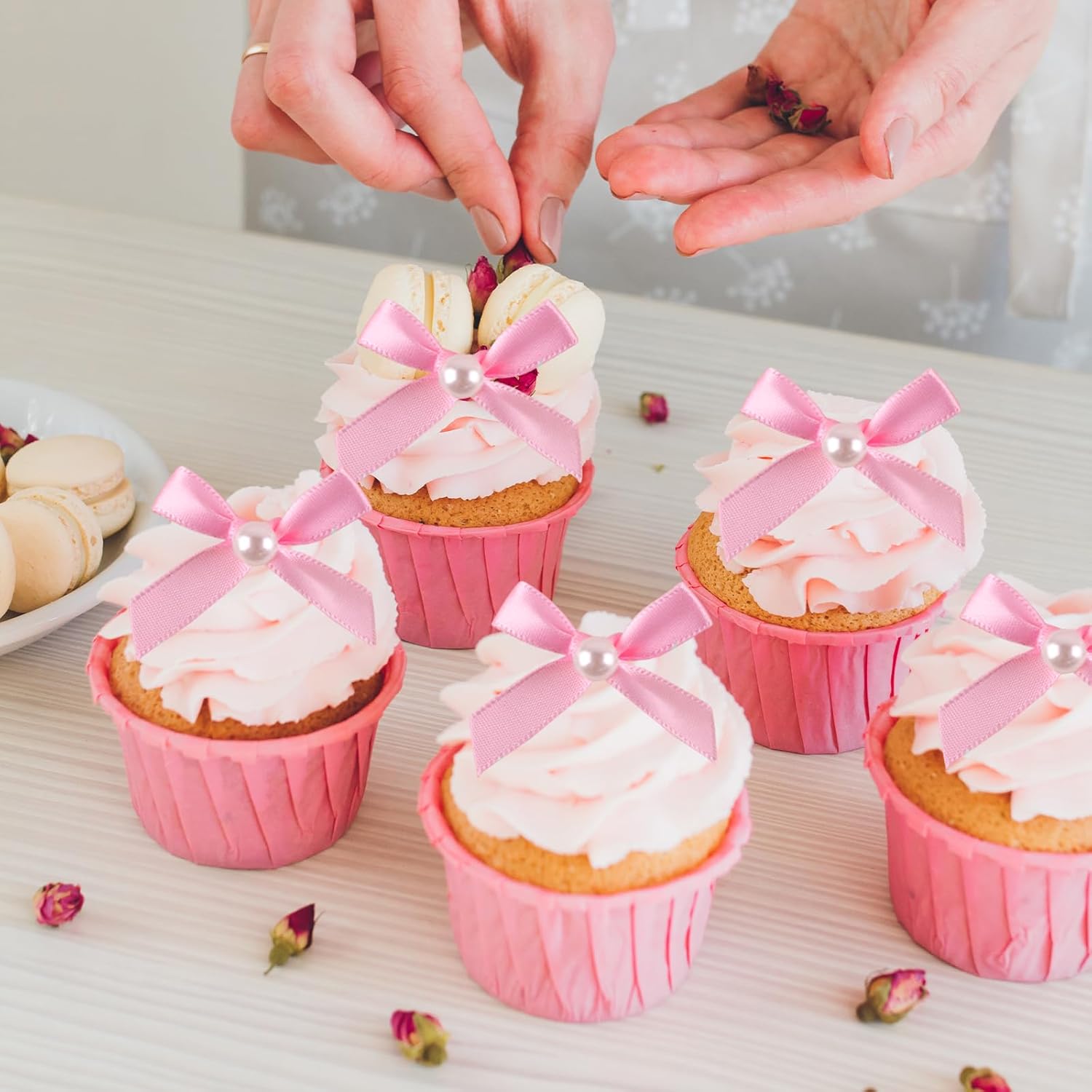 - 【High Quality Material】: These pearl bow cupcake decorations are made of quality satin fabric and comes with attachable clear plastic spikes; not easy to break, smooth, and shiny, offering a comfortable touch; Their cute and fun bow pattern which add charm and whimsy to your desserts, making your birthday party even more memorable.