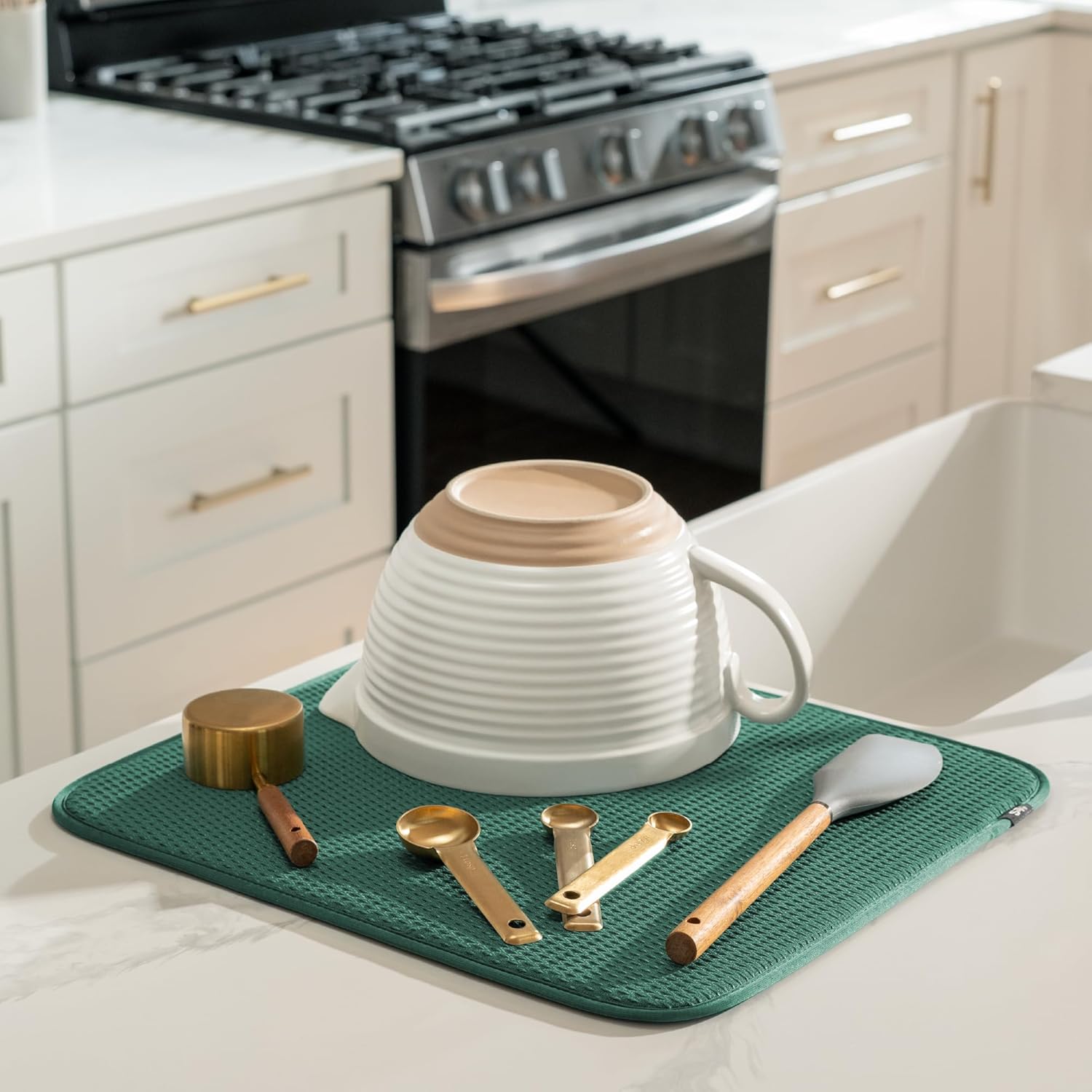 S&T INC. Dish Drying Mat, 16” x 18”, Absorbent Microfiber Kitchen Counter Mat, Drying Pad for Dishes, Utensils, Pots and Pans, Large, Diamond Texture, Emerald Green