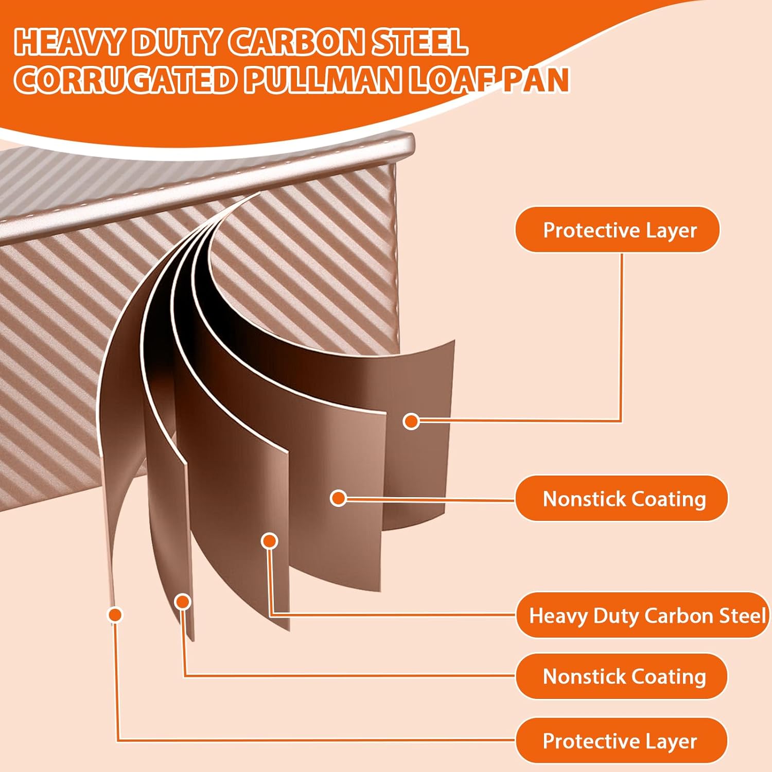 - DUARABLE&EASY MAINTENANCE – Featuring food-safe nonstick coating (PFOA/PTFE/BPA Free), this carbon steel bread pan resists rust and stains. Hand-wash recommended for longevity - simply soak in warm soapy water for 10 mins. Includes silicone corner protectors to prevent coating damage during storage.