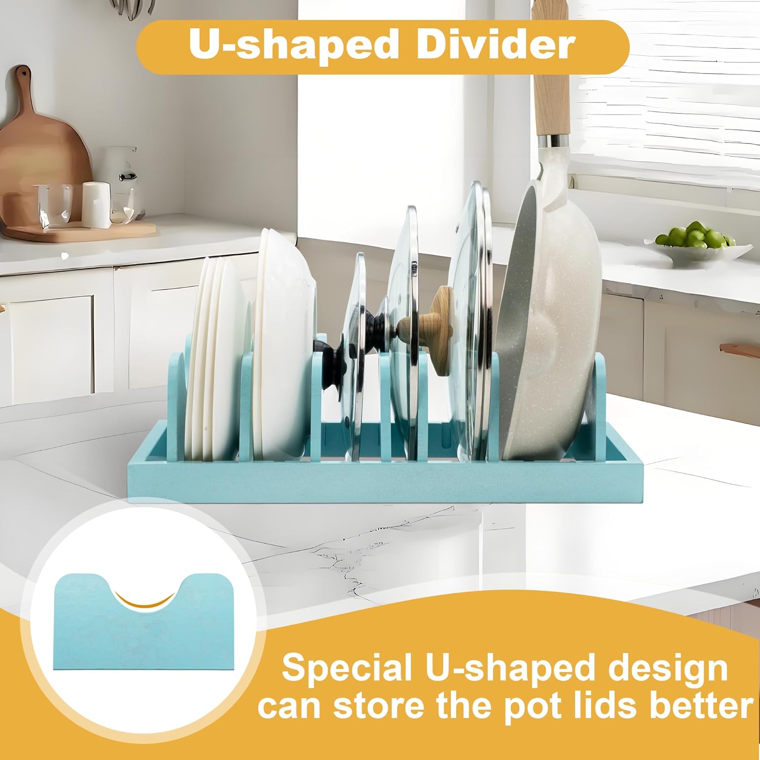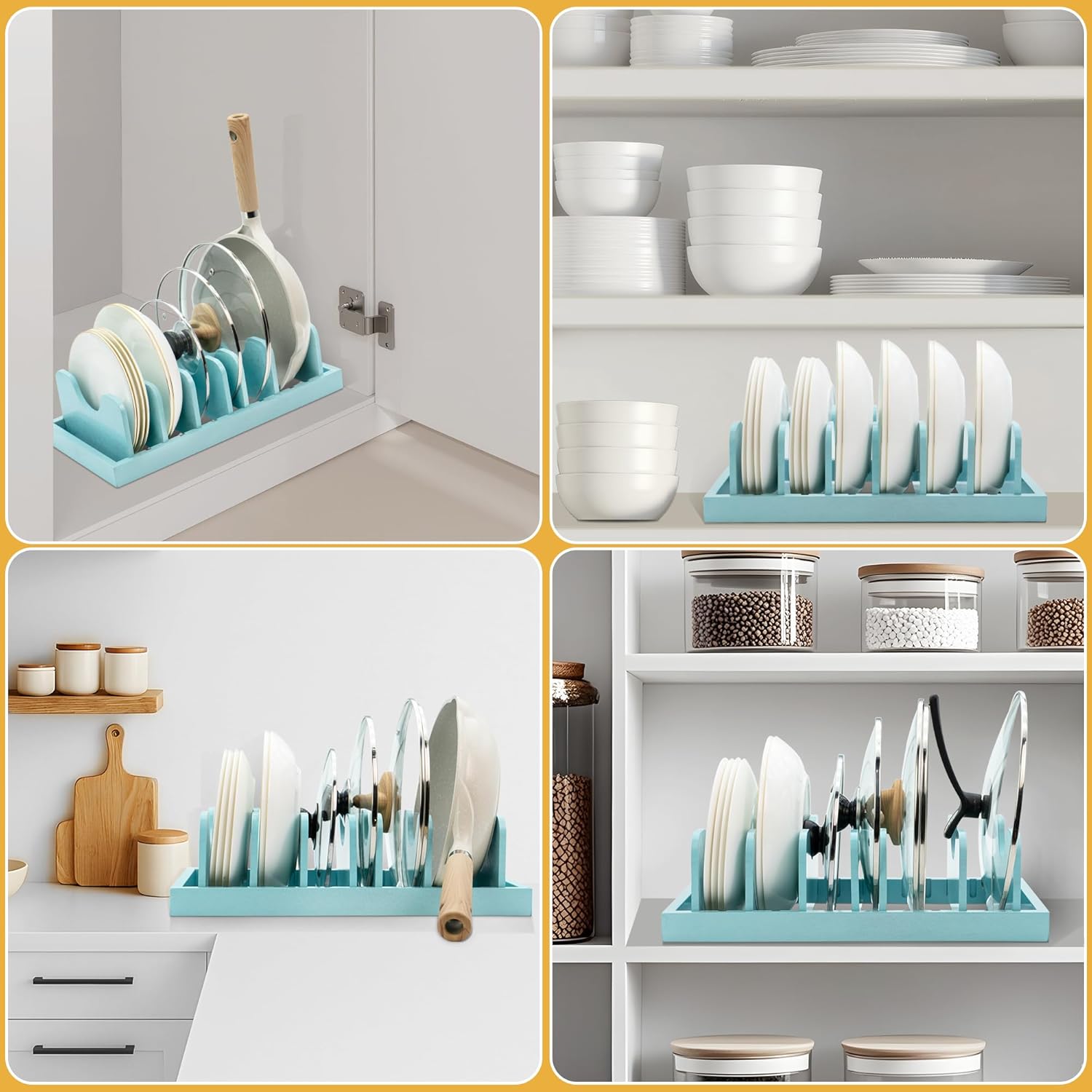 MinBoo Bamboo Pot Lid Organizer Pot Lid Holder, Pot and Pan Organizer Drawer Organizer for Pot Lids, Pans, Dinner Plates, Reusable Containers in Cabinet Storage,Blue