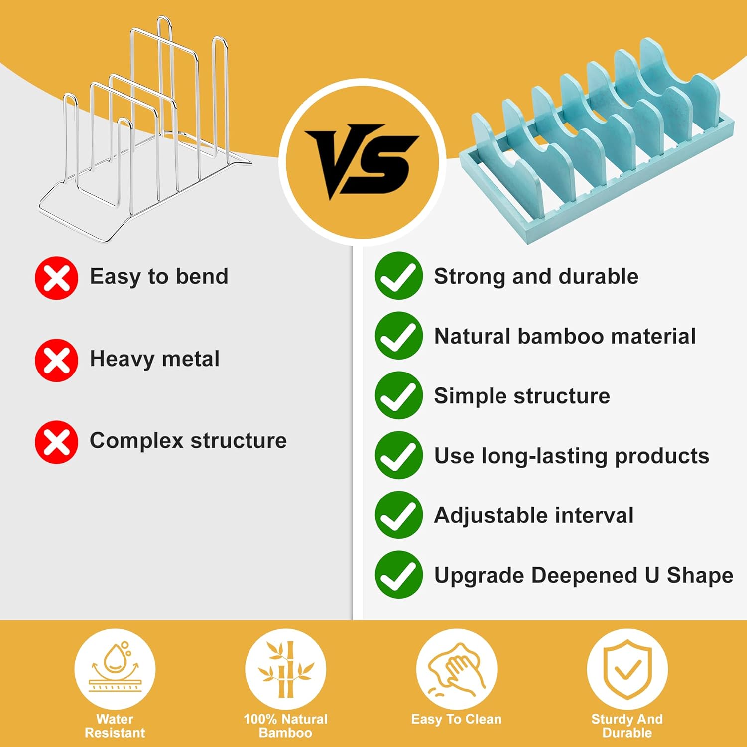 - Durable and Safe Material: It is made of natural bamboo products. The stand is better upgraded, more durable and stable to hold heavier cookware. Natural bamboo products can better match the cookware and style of the kitchen,The smooth surface can protect your kitchen items from being scratched
