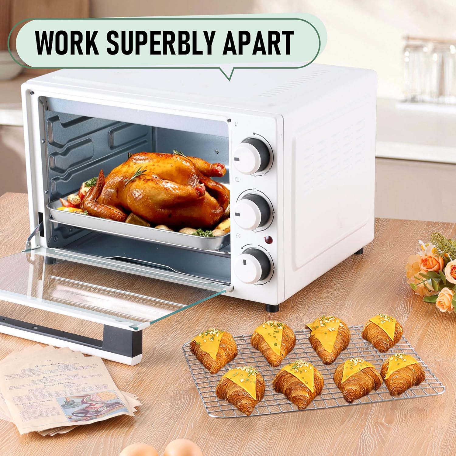 - Exquisite crafted, grid rack perfectly fits in the baking pan and work well on most regular oven or toaster oven, have excellent heat conductivity for evenly baking, oven safe up to 450°F, smooth mirror finished surface to to minimize the risk of food sticking, offer quick food release and easy cleaning, dishwasher safe to save your labor and time