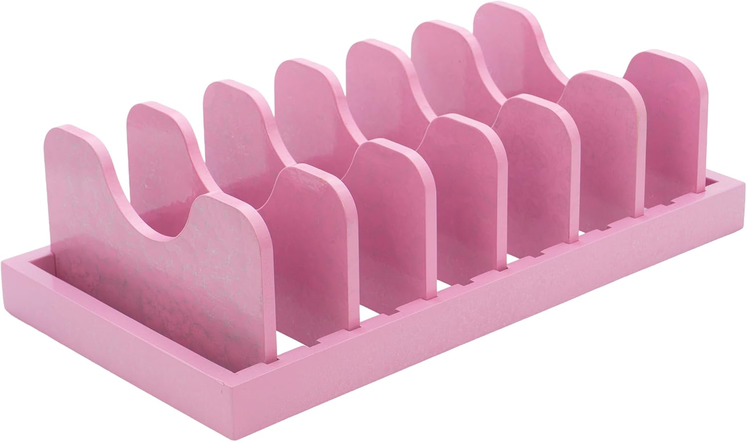 MinBoo Bamboo Pot Lid Organizer Pot Lid Holder, Pot and Pan Organizer Drawer Organizer for Pot Lids, Pans, Dinner Plates, Reusable Containers in Cabinet Storage,Pink