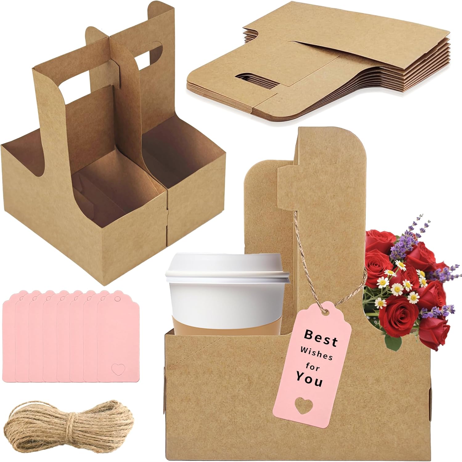 - Personalized Gifting Solution: The 2-cup drink carrier includes complimentary a 5m ribbon and 8 pink cards to add heartfelt messages, transforming ordinary drinks or treats into memorable, customized gifts.