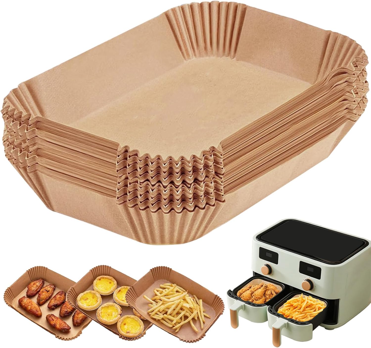 - 【Heat-Resistant & Durable】 Made from high-quality, unbleached parchment paper, these liners are heat-resistant up to 450°F (232°C), making them safe for air frying, baking, and roasting without tearing or burning.