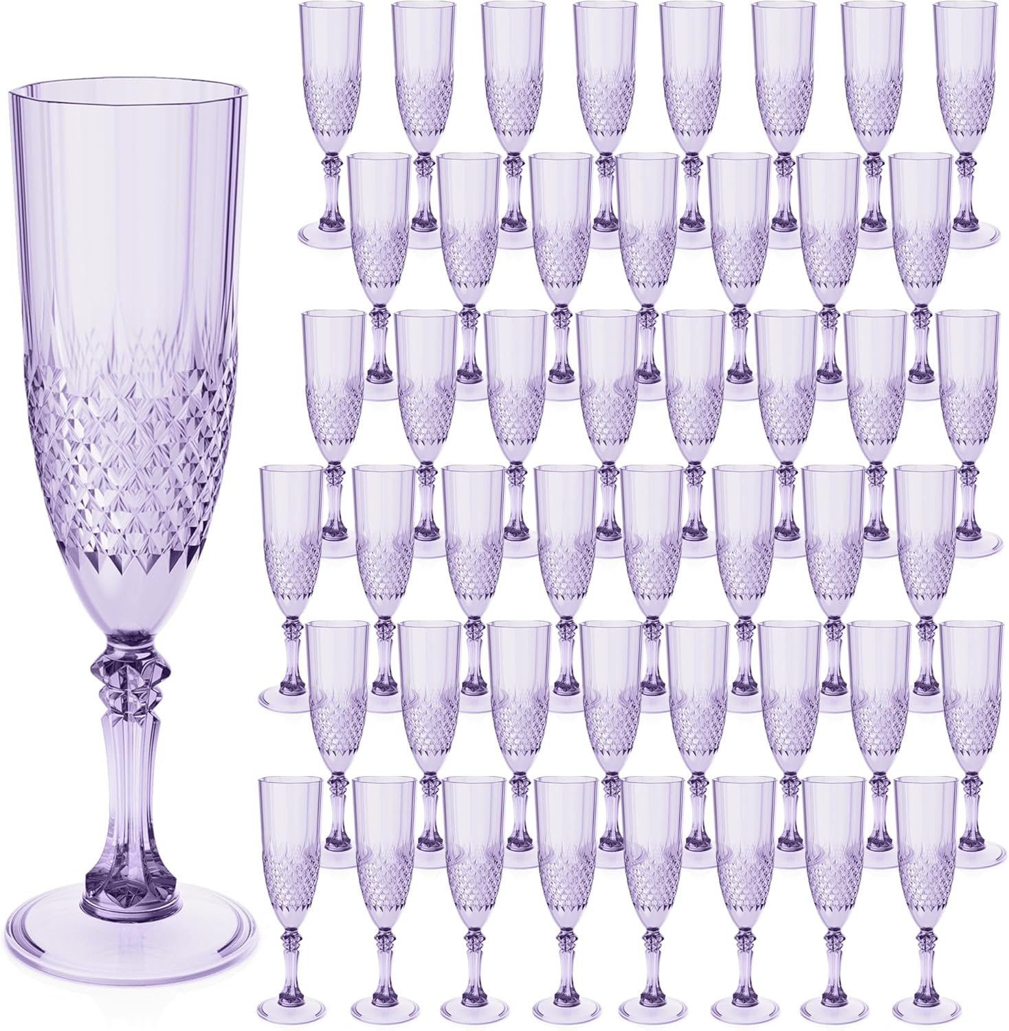 - Charming Set: Champagne flutes set include 48 retro-style light purple champagne plastic wine glasses, providing ample quantity to meet your daily use and replacement needs. A suitable champagne cup is the icing on the cake. Plastic wine glasses not only carry the wine, but also carries the laughter and blessings