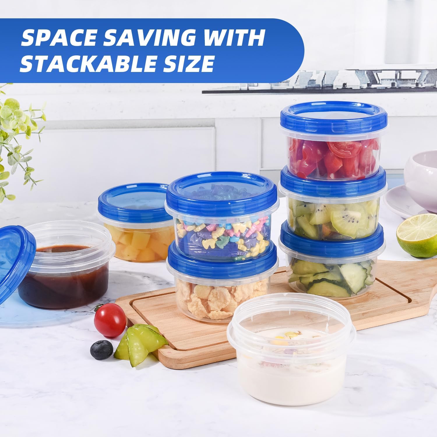 - PREMIUM DESIGN: Our freezer containers and lids are stackable, so it keeps your home/freezer/fridge organized. It's also easy to store when not in use, or for travel and transport.