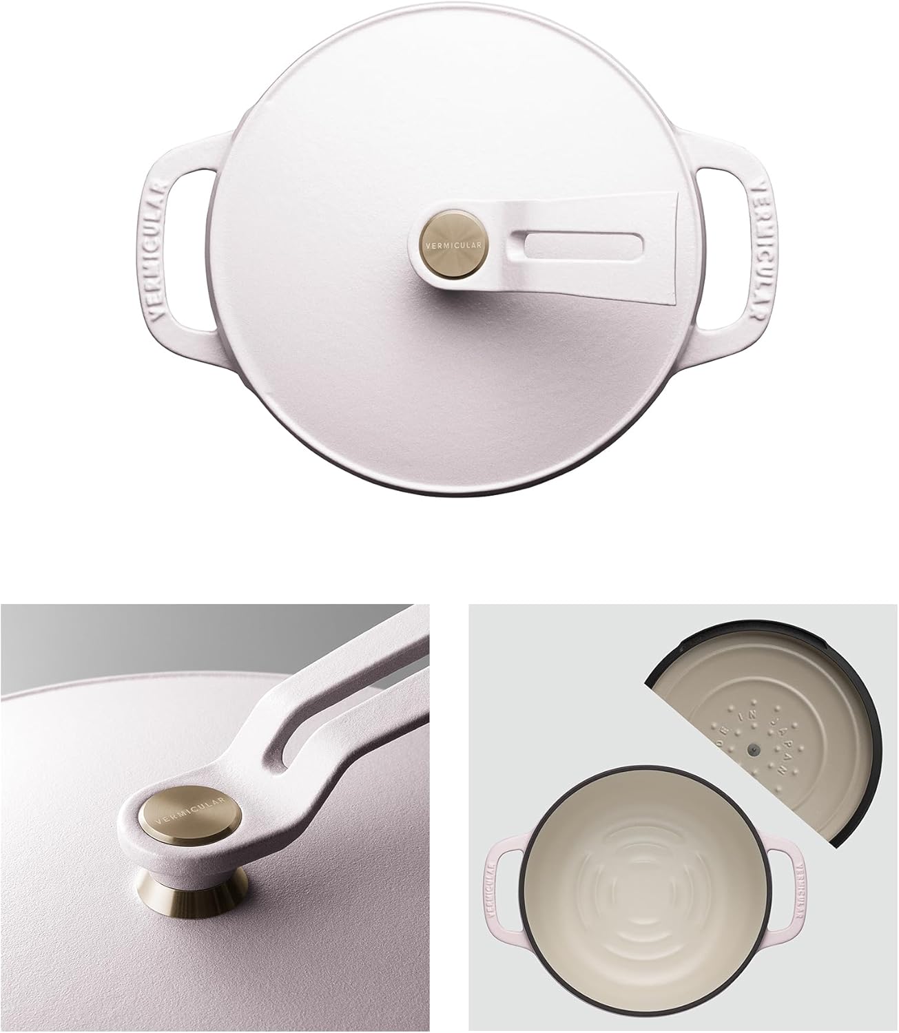 - Instant Evaporation: With Vermicular’s proprietary enamel coating, the pot quickly eliminates surface moisture, making the pot ideal for fast cooking methods like searing, stir-frying, and steam-roasting.